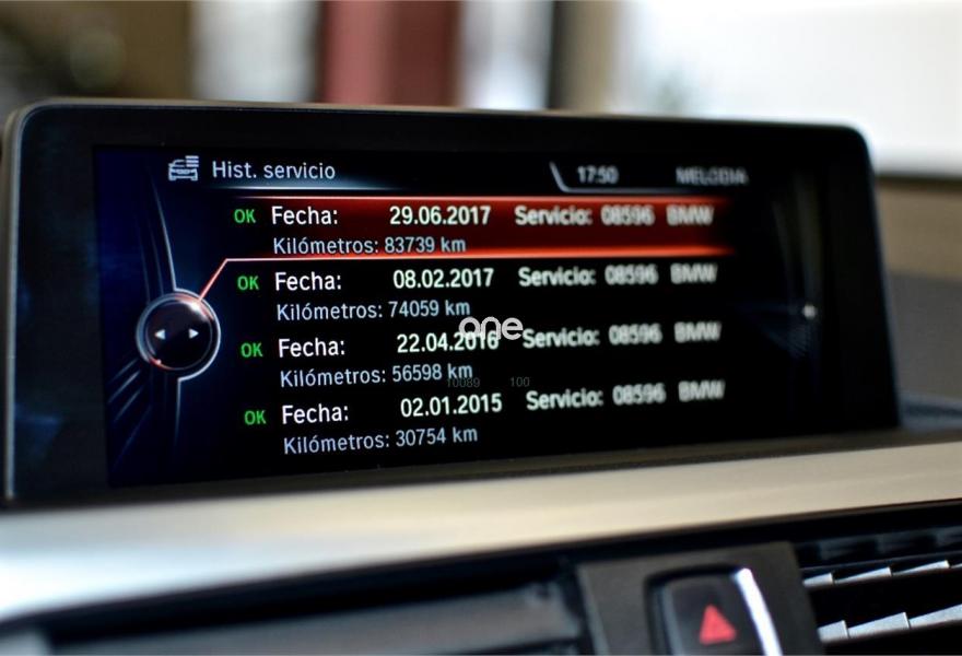 BMW Serie 3, Diesel, año 2014, 99000 kilómetros, color Gris / Plata (Mineralgrau) metalizado, precio 19999€. Asientos deportivos para conductor y acompañante,Cuero 'Dakota',Reposabrazos delantero, deslizable,17", llantas de aleación ligera de radios dobles (estilo 392),Cámara para marcha atrás,Control de distancia en aparcamiento (PDC),Neumáticos con funcionamiento en caso de avería,BMW Head-Up Display,Mineralgrau (metalizado),Soporte lumbar en los asientos delanteros,Sistema de navegación Professional,Dispositivo manos libres con interfaz USB,Molduras interiores negro de brillo intenso,Cambio automático deportivo,Lavado de faros,Faros xenón,Telefonía de confort con conexión ampliada para smartphone,Volante deportivo de cuero en negro,Advertencia de cambio de carril,Control de crucero con función de frenado,Cuadro de instrumentos con contenido ampliado,Paquete de iluminación,Persiana solar en las ventanillas laterales traseras, mecánica,Retrovisor interior, con ajuste automático anti-deslumbramiento,Pintura metalizada,Persiana solar en la luneta trasera,Asistente de luz de carretera,Sport Line. VEHÍCULO DE MARZO DE 2014