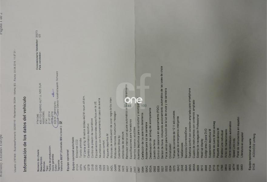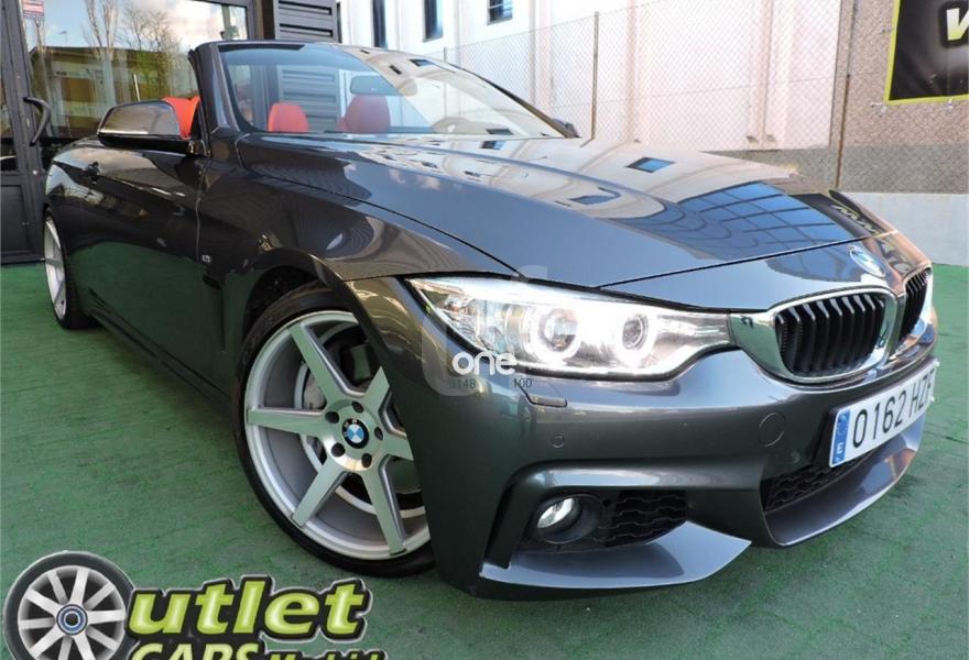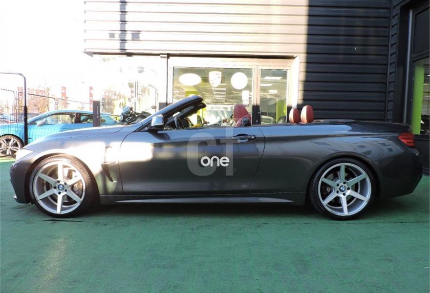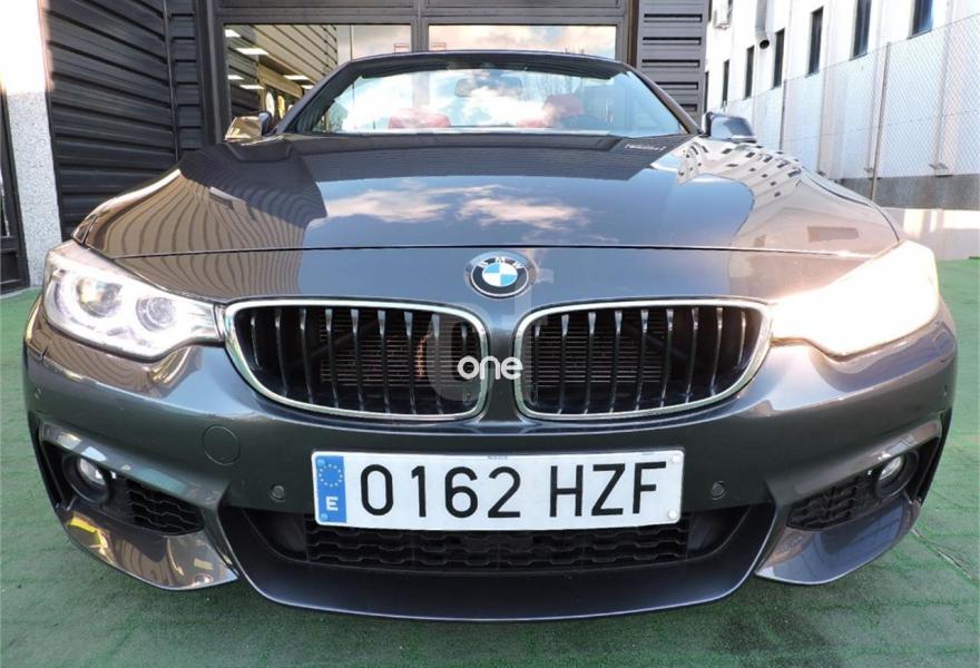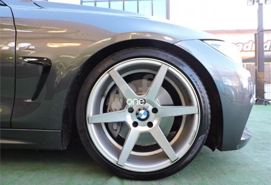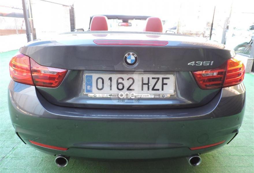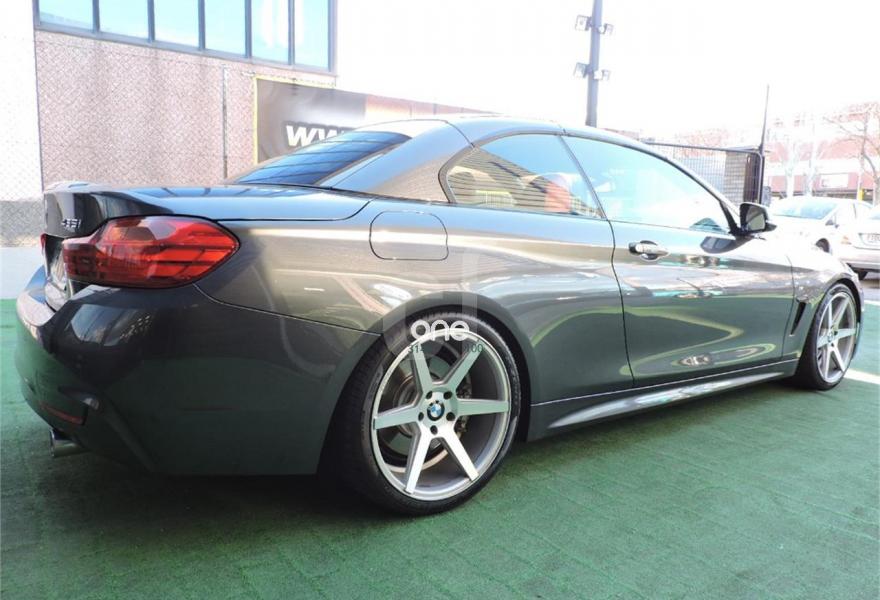 BMW Serie 4, Gasolina, año 2014, 72000 kilómetros, color Gris / Plata metalizado, precio 39990€. 19", llantas de aleación ligera M de radios dobles (estilo 442 M) con neumáticos de diferentes dimensiones,Cambio automático deportivo,Acceso confort,Paquete deportivo M,Molduras de acentuación de color negro de brillo intenso,Molduras interiores Aluminium Hexagon,Retrovisor interior con ajuste automático anti-deslumbramiento,Sistema de carga de objetos largos,Asientos deportivos para conductor y acompañante,Calefacción de los asientos delanteros,Asistente de luz de carretera,Control de distancia en aparcamiento (PDC),Toma de corriente de 12 V adicional,Servicios ConnectedDrive,Telefonía de confort con conexión ampliada para smartphone,Cuadro de instrumentos con contenido ampliado,Sistema de navegación Professional,BMW Head-Up Display,Suspensión deportiva M,Volante M de cuero,Paquete aerodinámico M,Shadow Line de brillo intenso BMW Individual,Speed Limit Info,Pintura metalizada. BMW 435i 2p. Cabrio