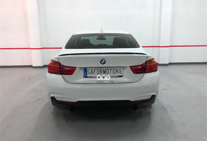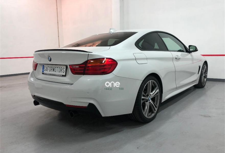 BMW Serie 4, Gasolina, año 2014, 91000 kilómetros, color Blanco ((MINERALWEISS METALLIC)) metalizado, precio 38500€. Paquete Confort,Paquete de servicios ConnectedDrive,Speed Limit Info,Asientos deportivos para conductor y acompañante,Calefacción de los asientos delanteros,Soporte lumbar en los asientos delanteros,Reposabrazos delantero, deslizable,Molduras interiores Aluminium Hexagon,Dispositivo manos libres con interfaz USB,Sistema de sonido surround Harman Kardon,Caja de cambios Steptronic deportivo,Acceso confort,Asistente de luz de carretera,Cuero 'Dakota' con costura de diseño exclusivo Sattlebraun,Faros LED autoadaptables,Luces autoadaptables,Sistema de navegación Professional,Servicios ConnectedDrive,Telefonía de confort con conexión ampliada para smartphone,Volante deportivo de cuero en negro,Volante M de cuero,Sport Line,Pintura metalizada,Mineralweiß (metalizado),Espejos retrovisores interior y exteriores con ajuste automático anti-deslumbramiento,Carcasas de los espejos retrovisores en negro,BMW Head-Up Display,Suspensión deportiva M,Asistente de aparcamiento,Control de distancia en aparcamiento (PDC),Neumáticos con funcionamiento en caso de avería,Protección activa,19", llantas de aleación ligera de radios en estrella (estilo 407) con neumáticos de diferentes dimensiones,Paquete deportivo M. Vehículo muy cuidado.