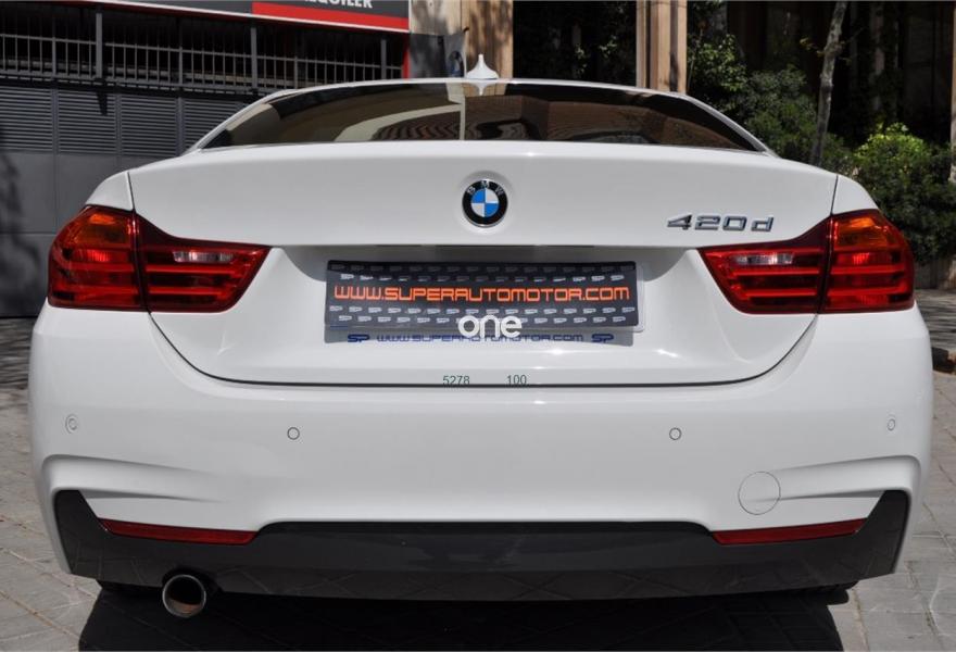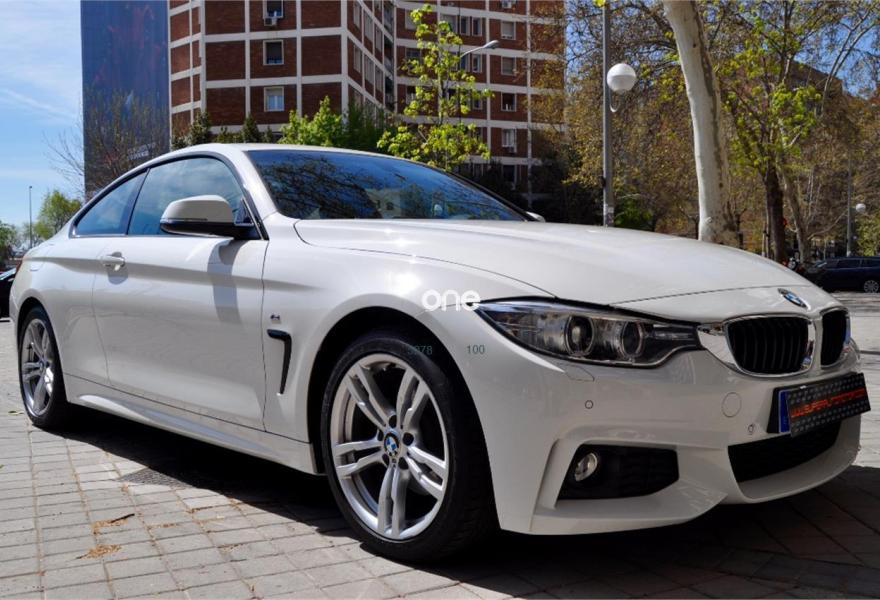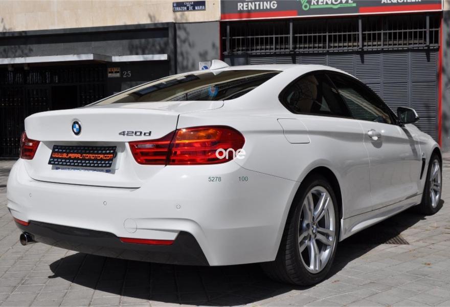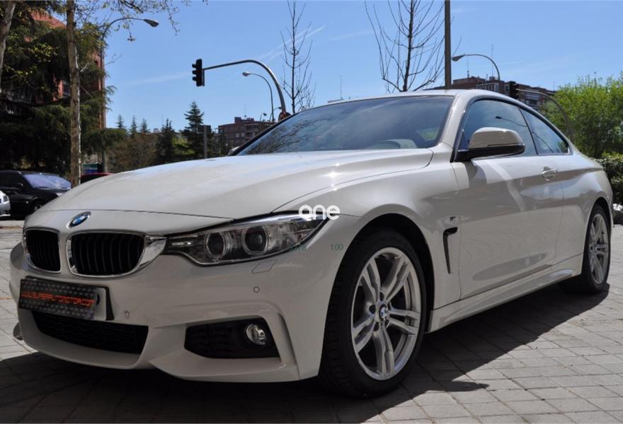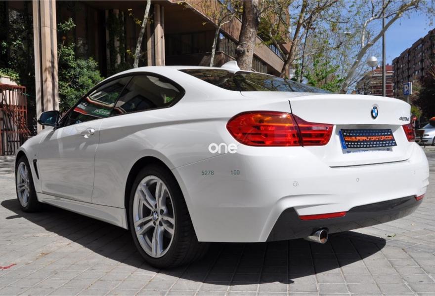 BMW Serie 4, Diesel, año 2014, 79000 kilómetros, color Blanco (BLANCO IBIS) , precio 26900€. Paquete deportivo M,Paquete M-Sport Edition,Asientos deportivos para conductor y acompañante,Molduras interiores Aluminium Hexagon,Reposabrazos delantero, deslizable,Soporte lumbar en los asientos delanteros,Dispositivo manos libres con interfaz USB,Sistema de altavoces HiFi,Cambio automático deportivo,Asistente de luz de carretera,Dispositivo de alarma,Paquete aerodinámico M,Retrovisor interior, con ajuste automático anti-deslumbramiento,Sistema de navegación Professional,Telefonía de confort con conexión ampliada para smartphone,Volante M de cuero,18", llantas de aleación ligera de radios dobles (estilo 397),Sport Line,Suspensión deportiva M,Asistente de aparcamiento,Control de crucero activo con función Stop&Go,Control de distancia en aparcamiento (PDC) delante y detrás,Speed Limit Info,Tela 'Hexagon'/Alcántara Anthrazit,Alpinweiß (sólido). BMW 420 D COUPE PACK "M"