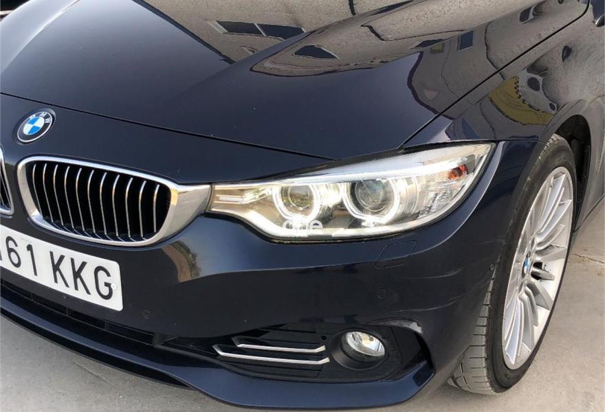 BMW Serie 4, Diesel, año 2015, 131500 kilómetros, color Azul metalizado, precio 25990€. Acabado Luxury Line,Paquete de servicios ConnectedDrive,Speed Limit Info,Asientos deportivos para conductor y acompañante,Cuero Dakota costura de diseño exclusivo Venetobeige Venetobeige/Schwarz,Molduras interiores Aluminium con rectificado longitudinal fino con moldura de acentuación de color negro de brillo intenso,Soporte lumbar en los asientos delanteros,Sistema de navegación Business,Sistema de altavoces HiFi,Asistente de luz de carretera,Cuero 'Dakota' con costura de diseño exclusivo Schwarz,Dirección deportiva variable,Espejos retrovisores interior y exteriores con ajuste automático anti-deslumbramiento,Molduras de entrada con anagrama BMW Individual,Luces autoadaptables,Internet,Real Time Traffic Information,Remote Services,Retrovisor interior, con ajuste automático anti-deslumbramiento,Servicios ConnectedDrive,Sistema de navegación Professional,Supresión de anagrama adicional exterior,Volante deportivo de cuero en negro,Acristalamiento de protección solar,Anagrama de modelo, supresión,Imperialblau (metalizado),BMW Head-Up Display,18", llantas de aleación ligera de radios múltiples (estilo 416),Cámara para marcha atrás,Asistente de aparcamiento,Control de crucero activo con función Stop&Go,Control de distancia en aparcamiento (PDC),Control de distancia en aparcamiento (PDC),Driving Assistant,Enganche de remolque. BMW 430 DA 258CV LUXURY LINE 8 VEL.
