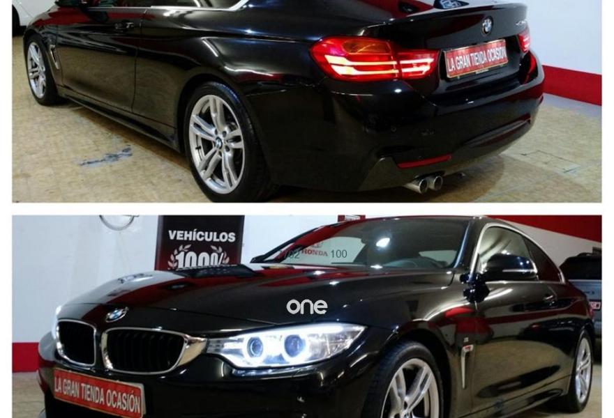 BMW Serie 4, Diesel, año 2014, 144000 kilómetros, color Negro metalizado, precio 28900€. OCASIÓN, BMW SERIE 4 - 430d COUPE PACK M 258CV. DIESEL. CAMBIO AUTOMÁTICO DE 8 VELOCIDADES CON LEVAS AL VOLANTE. VEHÍCULO NACIONAL. CON HISTORIAL DE MANTENIMIENTO DETALLADO. GARANTÍA MECÁNICA DE UN AÑO EN CASA OFICIAL Y TALLERES CONCERTADOS INCLUIDA. SE ACEPTA COCHE COMO PARTE DE PAGO.VEHÍCULO PROCEDENTE DE DIRECCIÓN DE EMPRESA. KILOMETRAJE REALIZADO EN CARRETERA. IVA DEDUCIBLE INCLUIDO. CON CERTIFICADO DE SINIESTRALIDAD Y KILOMETRAJE REAL. PARA CONTACTAR POR WHATSAPP AL607. 69. 77. 88. Con velocidad crucero, climatizador bizona, ISOFIX, *PAQUETE M* interior y exterior, velocímetro en pantalla HUD, sistema de conducción SPORT/ECO PRO, ordenador de abordo, volante en cuero multifunción, luz diurna LED, check control, faros xenón, sensor de luces y de lluvia, sensores de aparcamiento con cámara trasera a color, navegador con pantalla a color, asientos deportivos eléctricos con memoria, tapicería totalmente en cuero beige, sistema Start/Stop, BLUETOOTH, etc. Acepta prueba mecánica..