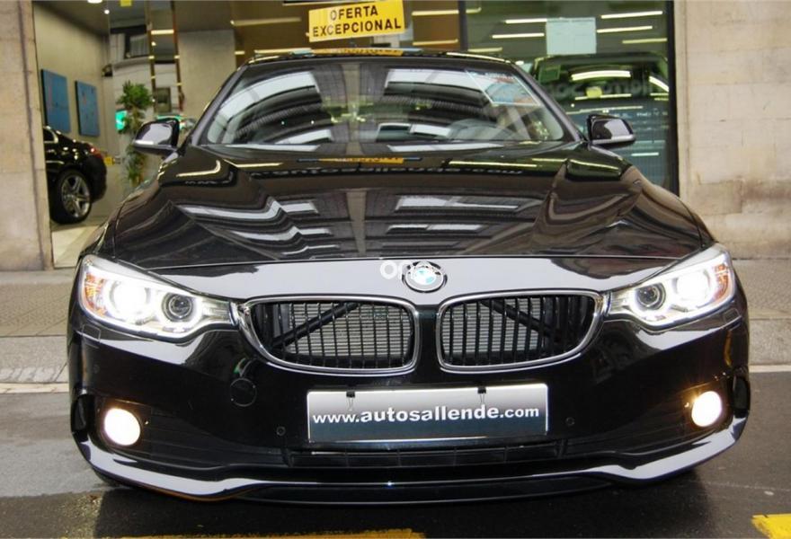 BMW Serie 4, Diesel, año 2015, 24780 kilómetros, color Negro (swarth) metalizado, precio 29999€. Acabado Advantage,Paquete Business (sólo para flotas),Speed Limit Info,Paquete de servicios ConnectedDrive,Calefacción de los asientos delanteros,Molduras interiores Aluminium con rectificado longitudinal fino con moldura de acentuación cromo de brillo perlado,Sistema de carga de objetos largos,Soporte lumbar en los asientos delanteros,Tela 'Track',Sistema de altavoces HiFi,Sistema de navegación Business,Acceso confort,Concierge Service,Asistente de luz de carretera,Cuadro de instrumentos con contenido ampliado,Dispositivo de alarma,Elementos exteriores en el color de la carrocería,Espejos retrovisores interior y exteriores con ajuste automático anti-deslumbramiento,Internet,Real Time Traffic Information,Remote Services,Retrovisor interior, con ajuste automático anti-deslumbramiento,Servicios ConnectedDrive,Supresión de anagrama adicional exterior,Tela 'Move' Anthrazit,Volúmenes exteriores en aluminio satinado,Volante deportivo de cuero en negro,Anagrama de modelo, supresión,Carbonschwarz (metalizado),Pintura metalizada,Pintura metalizada X,Saphirschwarz (metalizado),18", llantas de aleación ligera de radios en V (estilo 398) con neumáticos deportivos y de diferentes dimensiones, negras,Caja de cambios Steptronic,Caja de cambios Steptronic Sport,Asistente de aparcamiento,Control de distancia en aparcamiento (PDC),Control de distancia en aparcamiento (PDC). Vehículo en garantía del fabricante BMW hasta 2018 procedente de empleado de la fábrica. Pintura completa original. Revisión completa BMW hace 50 km. No tiene ningún gasto extra en carrocería ni en tapicería. Recogemos su vehículo como forma de pago. Descuento del 47% respecto a su precio tarifa de 55.702€. Motor diesel con cambio Steptronic de 8 velocidades. Tiene gran equipamiento extra con pintura metalizada Saphirschwarz, tapicería tela move anthrazit, llantas aleación ligera 18“ estilo 396, sistema de navegación, sistema de altavoces Hi-Fi, control distancia aparcamiento PDC, asientos delanteros calefactados, asientos delanteros con apoyo lumbar, retrovisor interior antideslumbrante, sistema carga objetos largos, faros bixenon y sensor luces/lluvia, Tempomat, Bluetooth, etc. PRECIO DE VENTA = 29.999€. Precio final con todos los impuestos incluidos y con la transferencia a nombre del comprador. Anuncio no vinculante. Puede contener errores. +INFO autosallende.com.