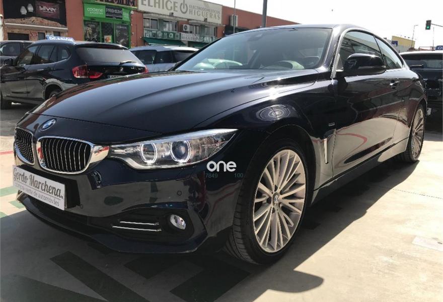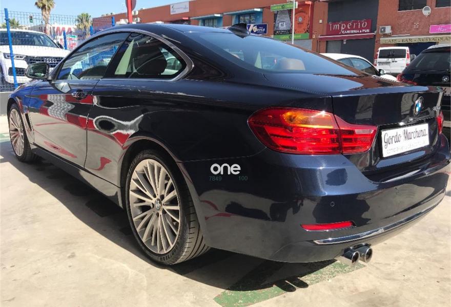 BMW Serie 4, Diesel, año 2015, 160000 kilómetros, color Azul metalizado, precio 21900€. Acabado Luxury,Asientos deportivos para conductor y acompañante,Cuero 'Dakota' Sattelbraun Schwarz,Equipamiento ampliado de cuero BMW Individual Muskat Schwarz,Molduras interiores Aluminium con rectificado longitudinal fino con moldura de acentuación de color negro de brillo intenso,Soporte lumbar en los asientos delanteros,Sistema de navegación Business,Sistema de altavoces HiFi,Acceso confort,Asistente de luz de carretera,Dispositivo de alarma,Elementos exteriores en el color de la carrocería,Cuero 'Dakota' con costura de diseño exclusivo Sattlebraun,Faros LED autoadaptables,Freno deportivo M,Guarnecido interior del techo BMW Individual antracita,Espejos retrovisores interior y exteriores con ajuste automático anti-deslumbramiento,Sistema de navegación Professional,Volante deportivo de cuero en negro,Volante M de cuero,Acristalamiento de protección solar,Luxury Line,Estoril Blau (metalizado),Cuadro de instrumentos con contenido ampliado,Caja de cambios Steptronic Sport,Asistente de aparcamiento,Cámara para marcha atrás,Control de distancia en aparcamiento (PDC),Control de crucero activo con función Stop&Go,Protección activa,19", llantas de aleación ligera BMW Individual de radios en V (estilo 626 I).