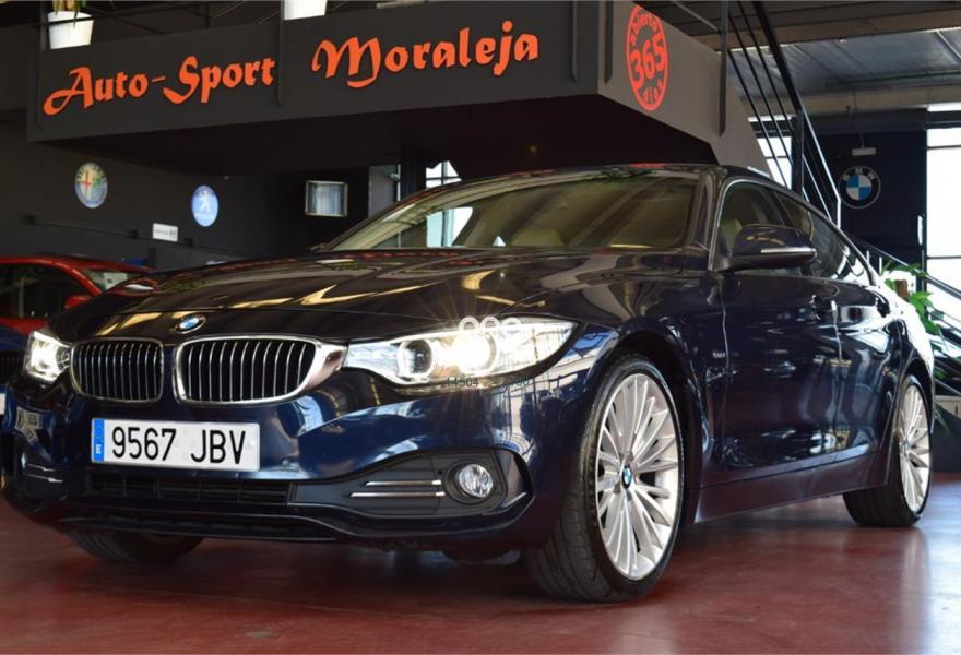BMW Serie 4, Diesel, año 2014, 93700 kilómetros, color Azul (Imperialblau) metalizado, precio 28900€. Paquete de servicios ConnectedDrive,Speed Limit Info,Calefacción de los asientos delanteros,Asientos deportivos para conductor y acompañante,Cuero Dakota Venetobeige Venetobeige,Molduras de acentuación cromo de brillo perlado,Reposabrazos delantero, deslizable,Revestimiento de madera noble 'Fineline' antracita,Caja de cambios Steptronic deportivo,Control de crucero con función de frenado,Cuadro de instrumentos con contenido ampliado,Cuero 'Dakota' con costura de diseño exclusivo Venetobeige,Internet,Paquete de compartimentos,Paquete de iluminación,Reglaje de los asientos, eléctrico, con memoria,Sistema de navegación Professional,Volante deportivo de cuero en negro,Volante M de cuero,Imperialblau (metalizado),Luxury Line,Pintura metalizada,19", llantas de aleación ligera de radios múltiples (estilo 399) con neumáticos de diferentes dimensiones,Control de distancia en aparcamiento (PDC),Neumáticos con funcionamiento en caso de avería. *Llévatelo por 27.900€, financiando un mínimo de 10.000€ a partir de 72 Meses. Vehículo Nacional de un único propietario. Libro de revisiones con última revisión en Concesionario Oficial BMW el 13/07/2017a los 83.274Kms. En el precio se incluye: IVA (Deducible), Transferencia y Garantía de un año // Abierto 365 días - Financiación sin entrada 365€/Mes - Web: autosportmoraleja.es //