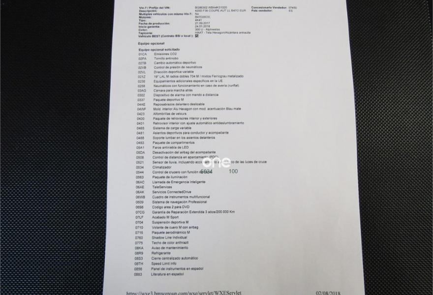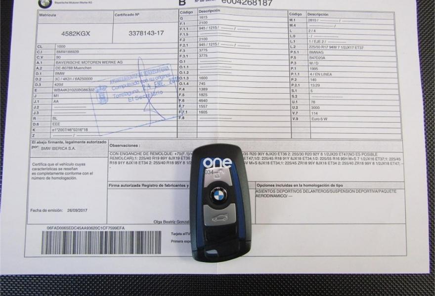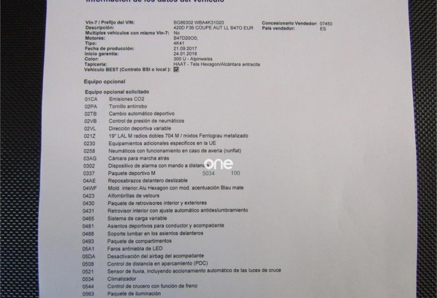 BMW Serie 4, Diesel, año 2018, 3000 kilómetros, color Blanco , precio 37600€. Paquete deportivo M,Asientos deportivos para conductor y acompañante,Calefacción de los asientos delanteros,Paquete de iluminación,Tela 'Hexagon'/Alcántara,Toma de corriente de 12 V adicional,Cuadro de instrumentos con contenido ampliado,Control de crucero con función de frenado,Cuadro de instrumentos multifuncional,Faros LED autoadaptables,Paquete aerodinámico M,Volante M de cuero,Retrovisor interior, con ajuste automático anti-deslumbramiento,Suspensión deportiva M,19", llantas de aleación ligera M de radios dobles (estilo 704 M) con neumáticos de diferentes dimensiones,Caja de cambios Steptronic Sport,Cámara para marcha atrás,Control de distancia en aparcamiento (PDC),Control de distancia en aparcamiento (PDC),Neumáticos con funcionamiento en caso de avería,Protección activa. VEHICULO COMO SI FUERA NUEVO++NACIONAL++TAN SOLO 6 MESES Y 3000 KM CERTIFICADOS POR BMW ESPAÑA+++++