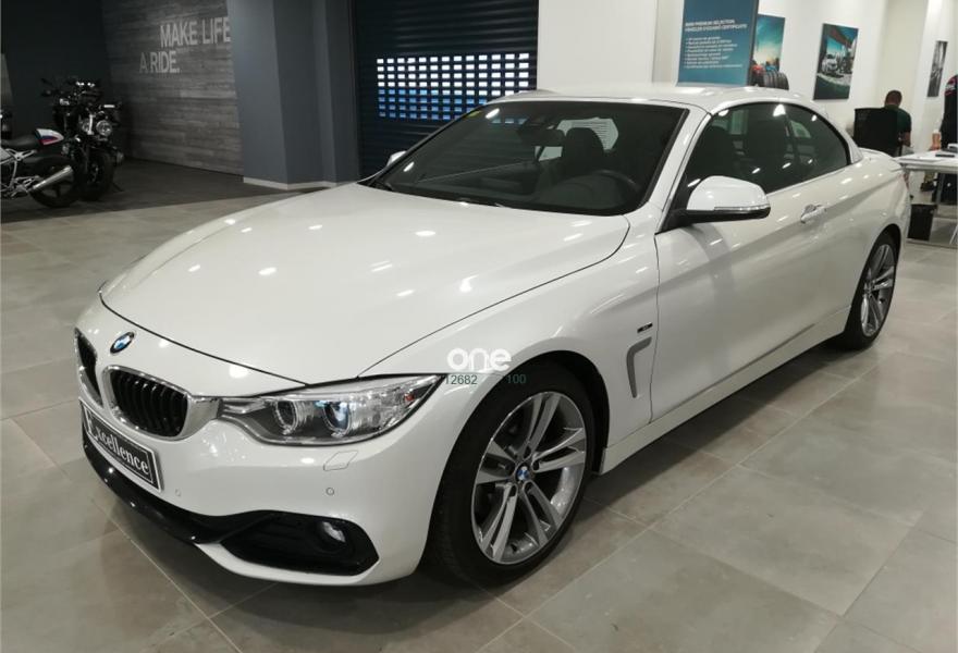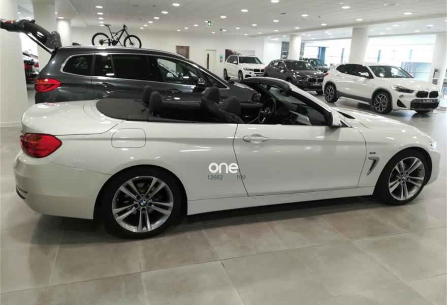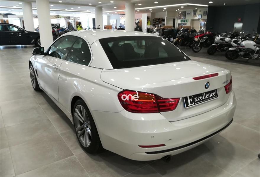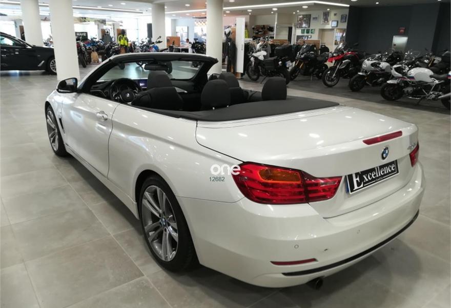 BMW Serie 4, Diesel, año 2014, 28000 kilómetros, color Blanco (CABRIO /Minerlaweiss /Cuero Dakota Schwarz/acento ) metalizado, precio 34990€. Navegación Professional,Speed Limit Info,Alfombrillas de velours,Asientos deportivos para conductor y acompañante,Calefacción de los asientos delanteros,Cuero 'Dakota',Molduras de acentuación de color negro de brillo intenso,Molduras interiores Aluminium con rectificado longitudinal fino,Paquete de compartimentos,Toma de corriente de 12 V adicional,Cambio automático deportivo,BMW TeleServices,Calentador de nuca,Control de crucero con función de frenado,Cuadro de instrumentos con contenido ampliado,Cuero 'Dakota' Schwarz,Paquete de iluminación,Retrovisor interior con ajuste automático anti-deslumbramiento,Sistema de navegación Professional,Telefonía de confort con conexión ampliada para smartphone,Volante M de cuero,18", llantas de aleación ligera de radios dobles (estilo 397),Deflector de viento,Espejos retrovisores interior y exteriores con ajuste automático anti-deslumbramiento,Sport Line,BMW Head-Up Display,Neumáticos con funcionamiento en caso de avería,Triángulo de emergencia con equipo de primeros auxilios,Control de distancia en aparcamiento (PDC). Barcelona Premium Concesionario Oficial BMW-MINI disponemos del vehículo de ocasión que está buscando a un precio inmejorable REF 5232