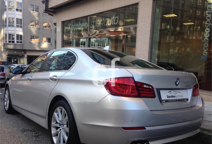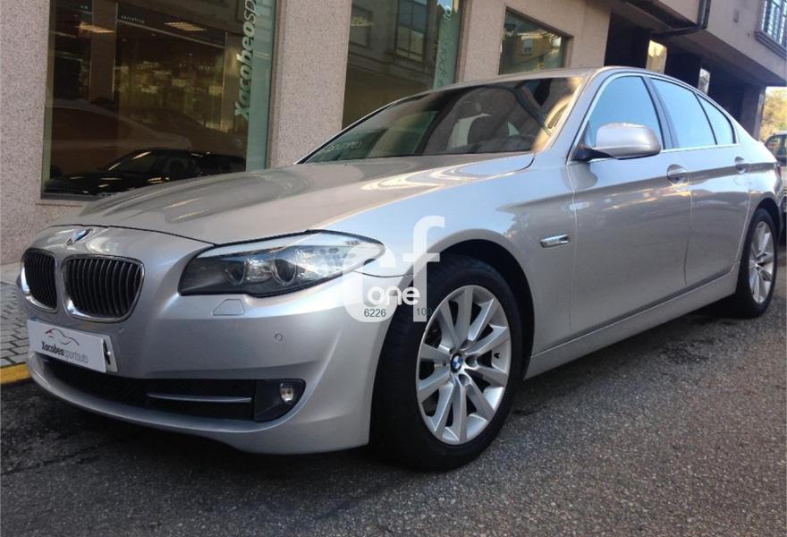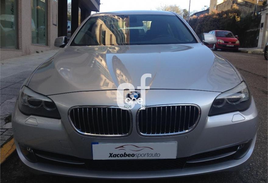BMW Serie 5, Diesel, año 2011, 138000 kilómetros, color Gris / Plata metalizado, precio 23900€. Paquete Comunicación Professional,Paquete Confort,Paquete Visibilidad,Asientos de confort delanteros, con reglaje eléctrico,Bolsa para esquíes,Molduras interiores de aluminio rectificado de precisión,Sistema de carga de objetos largos,Soporte lumbar en los asientos delanteros,Cuero 'Dakota',Interfaz USB audio,Sistema de altavoces HiFi,Sistema de navegación Business,Sistema de navegación Professional,Tomas de corriente adicionales de 12 V,Cambio automático deportivo,Cuero 'Dakota' Schwarz,Dirección activa integral,Dispositivo de alarma,Faros bi-xenón para función de luz de cruce y de carretera,Indicador de presión de inflado de neumáticos,Lavado de faros,Luces autoadaptables,Persiana solar en la luneta trasera,Preparación para teléfono móvil con interfaz Bluetooth,Pintura metalizada,18", Llantas de aleación ligera de radios en V (estilo 328),Tren de rodaje de serie,Control de distancia en aparcamiento (PDC),Neumáticos con funcionamiento en caso de avería. Vehículo en muy buen estado tanto exterior como interior, automático, navegación, bluetooth, tapicería de negro, control de aparcamiento delantero y trasero acústico y visual, control de velocidad, control por voz, bi-xenón, luces direccionales, llantas de aleación, etc. xacobeospor.