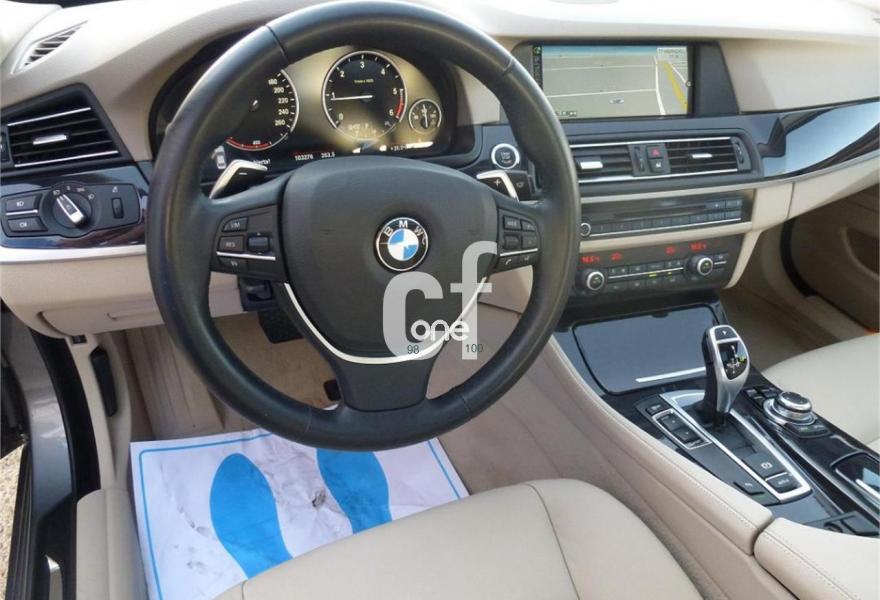 BMW Serie 5, Diesel, año 2013, 99000 kilómetros, color Gris / Plata metalizado, precio 22000€. *IMPECABLE ESTADO INTERIOR Y EXTERIOR*VEHICULO NACIONAL CON IVA DEDUCIBLE INCLUIDO EN EL PRECIO, KILOMETROS CERTIFICADOS, TODAS LAS REVISIONES PASADAS EN SERVICIO OFICIAL BMW*MUCHOS EXTRAS:TECHO ELECTRICO CORREDIZO DE CRISTAL,CAMBIO AUTOMATICO 8 VELOCIDADES Y LEVAS EN EL VOLANTE, ASIENTOS DE CUERO COMPLETO BEIGE DAKOTA, ASIENTOS CONDUCTOR SEMI ELECTRICO, FAROS XENON, SISTEMA DE NAVEGACION PROFESIONAL,LLANTAS,PARKTRONIC DELANTERO Y TRASERO,CONTROL Y LIMITADOR DE VELOCIDAD, BLUETOOTH, SENSOR DE LUCES Y LLUVIA,MOLDURAS INTERIORES NEGRAS,CUADRO INSTRUMENTOS AMPLIADOS, SISTEMA START STOP,CLIMATIZADOR AMPLIADO 2 ZONAS,PROTECCION PARA PEATONES,LUCES INTERIOR AMBIENTE,VOLANTE DEPORTIVO DE CUERO,...******PRECIO TODO INCLUIDO, INCLUYE GARANTIA DE UN AÑO Y TRANSFERENCIA A NOMBRE DEL COMPRADOR*EL VEHICULO TIENE 103.000 KMTRS*RECOGEMOS SU VEHICULO A CAMBIO*FINANCIACION A SU MEDIDA*Este anuncio no es vinculante, puede contener errores, se muestra a titulo informativo y no contractual**.