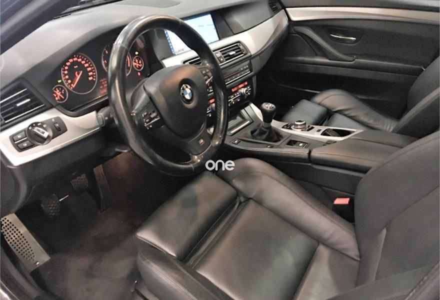 BMW Serie 5, Diesel, año 2011, 130000 kilómetros, color Negro (ANTRACITA MET.) metalizado, precio 19300€. Asistente de aparcamiento,Paquete deportivo M,Alfombrillas de velours,Asiento activo para conductor y acompañante,Asientos de cofort delanteros, con reglaje eléctrico,Asientos deportivos para conductor y acompañante,Calefacción de los asientos delanteros,Cuero 'Dakota',Guarnecido interior del techo BMW Individual antracita,Molduras interiores Aluminium Hexagon,Soporte lumbar en los asientos delanteros,Conexión ampliada del reproductor de musica en el teléfono móvil,Intercambiador DVD de 6 discos,Interfaz USB audio,Sistema de altavoces HiFi,Sistema de navegación Professional,Tomas de corriente adicionales de 12 V,BMW TeleServices,Climatizador con regulación de 4 zonas,Control por voz,Cuero 'Dakota' Schwarz,Dispositivo de alarma,Faros xenón para función de luz de cruce y de carretera,Indicador de presión de inflado de neumáticos,Lavado de faros,Paquete aerodinámico M,Preparación para teléfono móvil con interfaz Bluetooth,Retrovisor interior, con ajuste automático anti-deslumbramiento,Techo de cristal panorámico,Volante M de cuero,Suspensión deportiva M,19", Llantas de aleación ligera M de radios dobles (estilo 351 M),Acristalamiento de protección solar BMW Individual,Anagrama de modelo, supresión,Enganche de remolque,Espejos retrovisores interior y exteriores con ajuste automático anti-deslumbramiento,Pintura metalizada,Control de distancia en aparcamiento (PDC). 520 D "M" TOURING 184 CV MANUAL, GARANTIA 12 MESES,