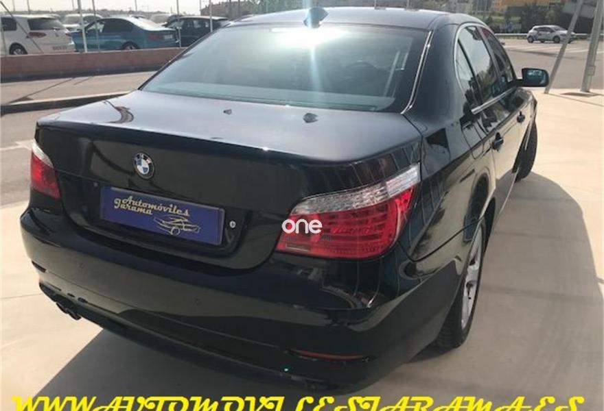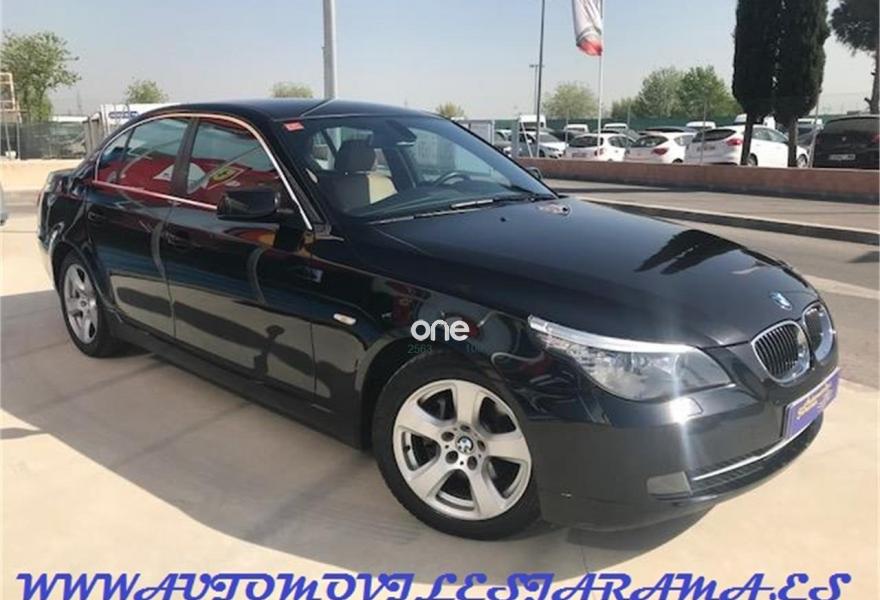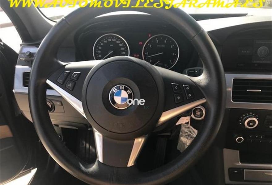 BMW Serie 5, Gasolina, año 2007, 123000 kilómetros, color Negro metalizado, precio 8990€. Edición Business,Alfombrillas de velours,Cuero Artificial Beige,Soporte lumbar en asientos delanteros,Tapicería cuero artificial,Sistema de altavoces Hi-Fi,Radio BMW Professional,Acabado deportivo M,Volante M de cuero,Volante deportivo de cuero,Llantas BMW aleación radios estrella 115,Control de distancia en aparcamiento PDC. Único Dueño, Nacional
