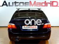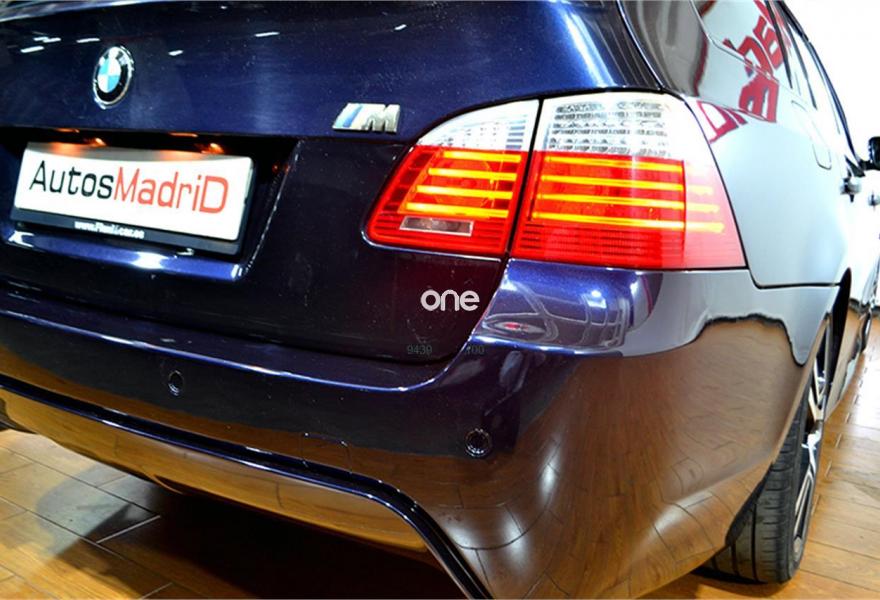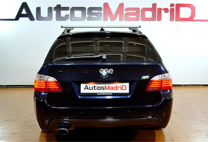 BMW Serie 5, Diesel, año 2009, 231000 kilómetros, color Azul metalizado, precio 9990€. Alfombrillas de velours,Guarnecido interior del techo BMW Individual antracita,Molduras interiores aluminio rectificado de precisión,Soporte lumbar en los asientos delanteros,Paquete deportivo M,Tela/cuero 'Reflex',Cambio automático,Sistema de altavoces HiFi,Sistema audio BMW Individual High End,Asistente de luz de carretera,Climatizador con volumen ampliado,Control por voz,Faros xenón para función de luz de cruce y de carretera,Lavado de faros,Paquete aerodinámico M,Preparación para intercambiador de CD,Preparación para teléfono móvil con interfaz Bluetooth,Respaldo regulable en anchura activo para conductor y acompañante,Retrovisor interior con ajuste automático anti-deslumbramiento,Reposabrazos delantero,Sistema de autocierre para las puertas,Tela/Cuero 'Reflex' Anthrazit/Schwarz,Volante M de cuero,Suspensión deportiva M,Carbonschwarz (metalizado),Pintura metalizada,Espejos retrovisores interior y exteriores con ajuste automático anti-deslumbramiento,Supresión del anagrama de modelo,Control de distancia en aparcamiento (PDC). P.V.P Garantía AutosMadriD a consultar. Equipado con: faros antiniebla, xenon, lunas tintadas, llantas de aleación de 17 pulgadas, parktronic delantero y trasero, retrovisores regulación eléctrica, volante multifunción de cuero con regulación eléctrica y memoria, regulador/limitador de velocidad, climatizador bizona, ordenador de abordo con pantalla multimedia, radio CD/Bluetooth, tapicería de cuero y tela, DSC, reposabrazos central con guantera y teléfono preinstalado, portaesquís, baca incluida, ISOFIX... pocas unidades en este estado.