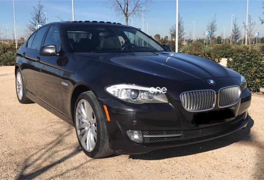 BMW Serie 5, Gasolina, año 2011, 168000 kilómetros, color Negro metalizado, precio 25000€. Asistente de aparcamiento,Cambio automático Steptronic,Paquete Comunicación Professional,Speed Limit Info,Asiento activo para conductor y acompañante,Alfombrillas de velours,Asientos de confort delanteros, con reglaje eléctrico,Bolsa para esquíes,Calefacción de los asientos delanteros,Calefacción de los asientos traseros,Cuero exclusivo 'Nappa' con contenido ampliado,Guarnecido interior del techo BMW Individual antracita,Sistema de carga de objetos largos,Revestimiento de madera noble veta de fresno de brillo intenso,Soporte lumbar en los asientos delanteros,Ventilación activa de los asientos delanteros,Conexión ampliada del reproductor de musica en el teléfono móvil,Intercambiador DVD de 6 discos,Interfaz USB audio,Sistema de altavoces HiFi,Sistema de navegación Professional,Sistema HiFi Professional,Sistema de navegación Business,Cambio automático deportivo,Acceso confort,Accionamiento automático del portón trasero,Asistente de luz de carretera,BMW TeleServices,Cuero 'Dakota' Schwarz,Dispositivo de alarma,Persiana solar,Persiana solar en la luneta trasera,Retrovisor interior, con ajuste automático anti-deslumbramiento,Preparación para teléfono móvil con interfaz Bluetooth,Sistema automático Softclose para las puertas,Techo de cristal eléctrico,19", llantas de aleación ligera de radios en W (estilo 332) con neumáticos de diferentes dimensiones,Black Sapphire (metalizado),Acristalamiento de protección solar BMW Individual,Pintura metalizada,Control de crucero activo con función Stop&Go. BMW 550i motor con 35000km, totalmente revisado y garantizado, todos los extras, motor Bi-Turbo de 404cv. Vehículo con todo el historial de mantenimiento y en muy buen estado. IVA deducible incluido en el precio..