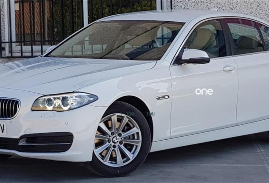 BMW Serie 5, Diesel, año 2015, 43598 kilómetros, color Blanco metalizado, precio 23490€. Asistente de aparcamiento,Paquete de servicios ConnectedDrive,Asientos de confort delanteros, con reglaje eléctrico,Cuero 'Dakota',Molduras interiores negro de brillo intenso en combinación con Líneas,Sistema de navegación Business,Real Time Traffic Information,Caja de cambios Steptronic,Cuero 'Dakota' costura de diseño exclusivo Oyster,Dirección activa integral,Faros LED autoadaptables,Lavado de faros,Luces autoadaptables,Pintura metalizada,Retrovisor interior, con ajuste automático anti-deslumbramiento,Servicios ConnectedDrive,Internet,Telefonía de confort con conexión ampliada para smartphone,17'', llantas de aleación ligera de radios en V (estilo 236),Alpinweiß (sólido),Anagrama de modelo, supresión,Espejos retrovisores interior y exteriores con ajuste automático anti-deslumbramiento,Supresión de anagrama adicional exterior,Reglaje de los asientos, eléctrico, con memoria,Driving Assistant,Control de distancia en aparcamiento (PDC),Protección activa. BMW 518 d AUT.