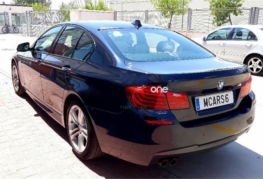 BMW Serie 5, Diesel, año 2013, 99000 kilómetros, color Azul metalizado, precio 21999€. Asistente de aparcamiento,Paquete Confort,Paquete Essential Edition,Asiento activo para conductor y acompañante,Asientos de confort delanteros, con reglaje eléctrico,Asientos deportivos para conductor y acompañante,Calefacción de los asientos delanteros,Cuero 'Dakota',Molduras interiores de aluminio rectificado de precisión,Soporte lumbar en los asientos delanteros,Conexión para dispositivos Bluetooth y USB,Sistema de navegación Professional,BMW Individual luces de lectura en la parte trasera,BMW TeleServices,Climatizador con regulación de 4 zonas,Conexión ampliada del reproductor de musica en el teléfono móvil,Cuero 'Dakota' Oyster/Schwarz,Dirección activa integral,Faros bi-xenón para función de luz de cruce y de carretera,Indicador de presión de inflado de neumáticos,Lavado de faros,Luz ambiente,Pintura metalizada,Retrovisor interior, con ajuste automático anti-deslumbramiento,Volante deportivo de cuero,Volante M de cuero,Espejos retrovisores interior y exteriores con ajuste automático anti-deslumbramiento,BMW Head-Up display,Control de distancia en aparcamiento (PDC),Neumáticos con funcionamiento en caso de avería. ****BMW SERIE 5 520D(F10) ACABADO M PACK unico dueño, Vehículo con todos los mantenimientos al día en la casa oficial