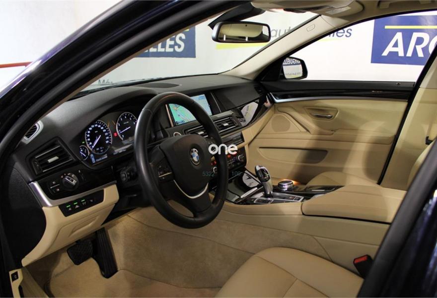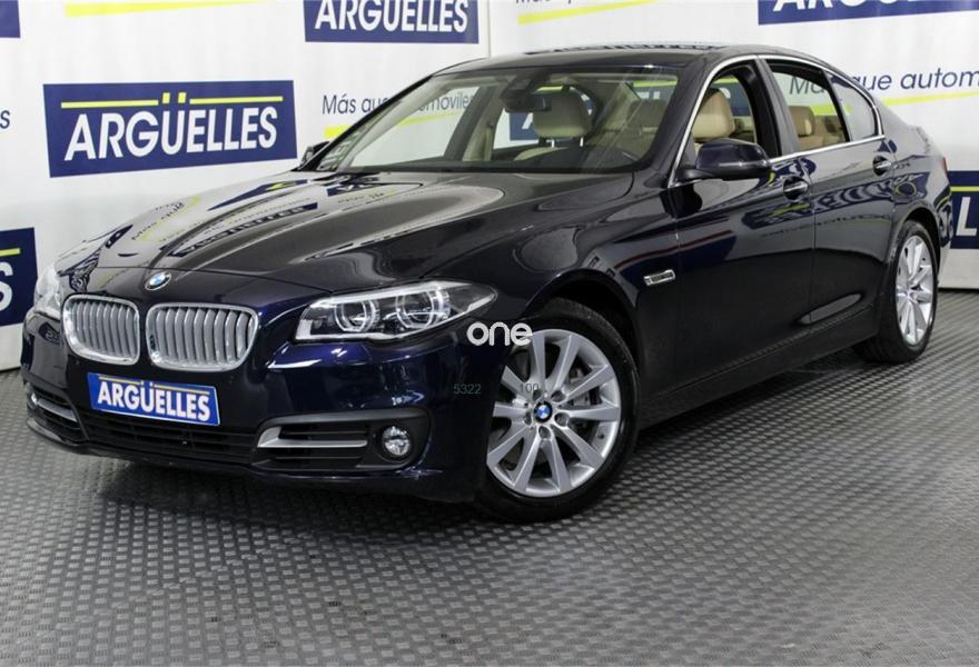 BMW Serie 5, Eléctrico / Híbrido, año 2015, 45048 kilómetros, color Azul metalizado, precio 39400€. Cuero 'Dakota',Cuero 'Dakota' Venetobeige,Imperialblau (metalizado),Pintura metalizada,18", Llantas de aleación ligera de radios en V (estilo 328),Accionamiento automático del portón trasero,Sistema automático Softclosen para las puertas,Cámara para marcha atrás,Control de distancia en aparcamiento (PDC),Driving Assistant,Surround View,Protección activa,Espejos retrovisores interior y exteriores con ajuste automático anti-deslumbramiento,Soporte lumbar en los asientos delanteros,Calefacción de los asientos delanteros,Lavado de faros,Faros LED autoadaptables,Faros antiniebla de LED,Asistente de luz de carretera,Advertencia de cambio de carril,Entretemiento en la parte trasera Professional,Sistema de navegación Professional,BMW Head-Up display,Internet,Servicios ConnectedDrive,Remote Services,Paquete de servicios ConnectedDrive,Speed Limit Info. Precio sujeto a financiación mínima de 22.000 Euros