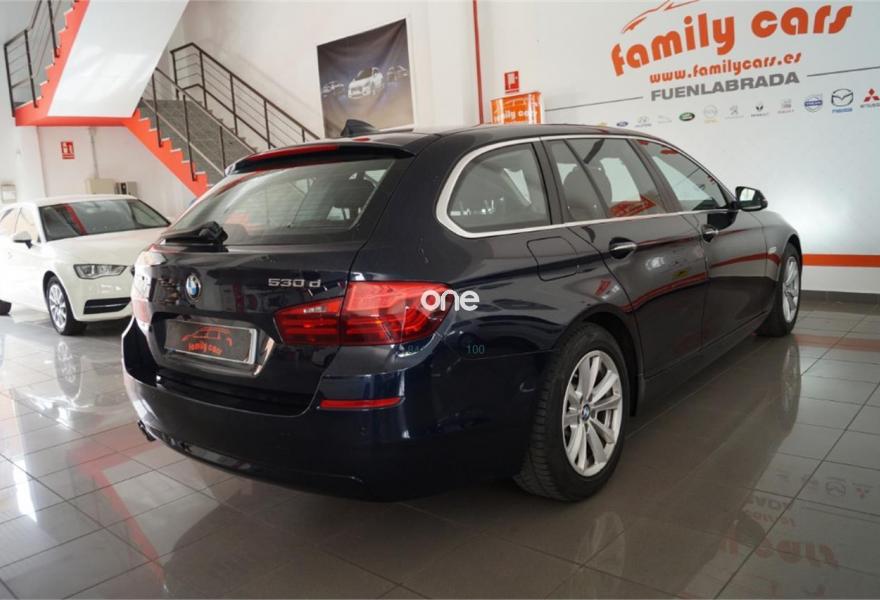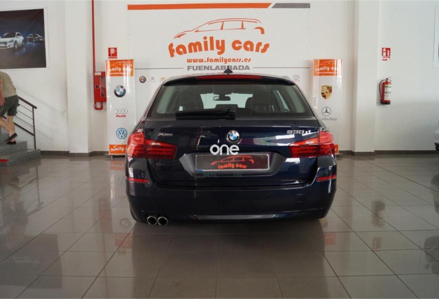 BMW Serie 5, Diesel, año 2015, 130000 kilómetros, color Azul metalizado, precio 22999€. Asientos de cofort delanteros, con reglaje eléctrico,Sistema de navegación Business,Cambio automático deportivo Steptronic,Servicios ConnectedDrive,Pintura metalizada,Tiefseeblau (metalizado),17", llantas de aleación ligera Streamline (estilo 363),Control de distancia en aparcamiento (PDC). Bmw 530D Touring X-Drive, 258CV, Cambio automático, Sistema de Navegación vía Satélite, Faros de Xenón, Sistema de Telefonía vía Bluetooth, Llanta de Aleación, sensores de aparcamiento delanteros y traseros, suspensión Sport, Climatizador Bi-zona, Portón trasero eléctrico, Muy bien cuidado. Aceptamos su coche como Parte de Pago. El coche se entrega revisado, trasferido y con 12 meses de garantía con Coche se Sustitución y Asistencia en Carretera. Kilómetros Garantizados. 100% de Financiación. Family Cars, Horario; L a V de 10:00 a 14:00 y de 16:00 a 20:00, Sábados de 10:00 a 14:00.NUEVAS INSTALACIONES en la Avd. de la HISPANIDAD, nº58 28946 FUENLABRADA