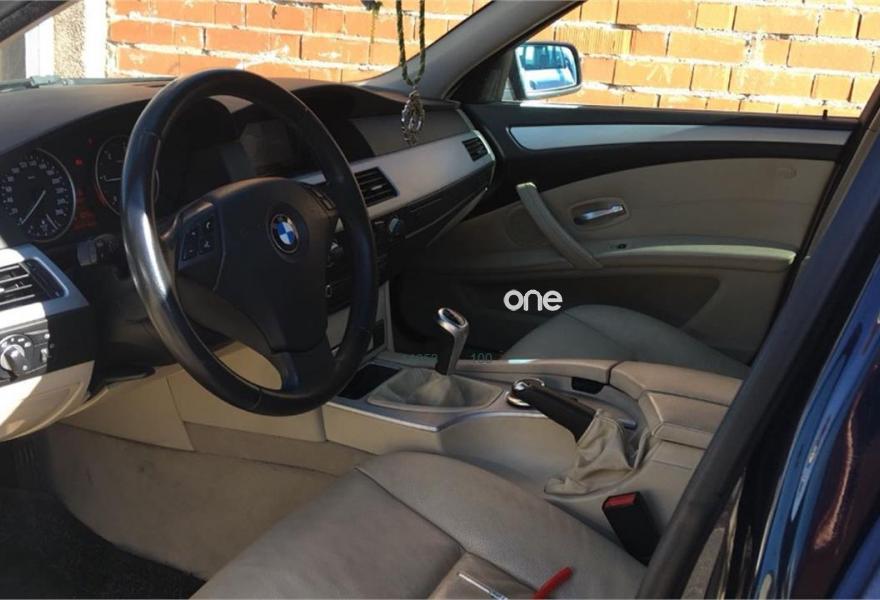 BMW Serie 5, Diesel, año 2008, 218000 kilómetros, color Azul , precio 10500€. Selección Comfort,Selección Navigation,Cuero 'Dakota',Intercambiador de 6 CD,Preparación para teléfono móvil con interfaz Bluetooth,Radio BMW Professional,Sistema de navegación Professional,Acceso confort,Climatizador con volumen ampliado,Control por voz,Faros xenón para función de luz de cruce y de carretera,Acristalamiento de protección solar BMW Individual,Barberarot (metalizado),Llantas de aleación ligera de radios en estrella (estilo 122) con funcionamiento en caso de avería,Pintura metalizada,Control de distancia en aparcamiento (PDC). VEHICULO EN PERFECTO ESTADO EMBRAGUE CAMBIADO CORREAS CAMBIADAS Y LA REVISION HECHA.MOTOR DE 2.0 177 CV. EL COCHE ESTA MUY CUIDADO BAJO CONSUMO NI UN SOLO RAYON.MAS INFORMACION PUEDEN CONTACTAR AL TF-605-27-43-23. FINANCIACION A SU MEDIDA..