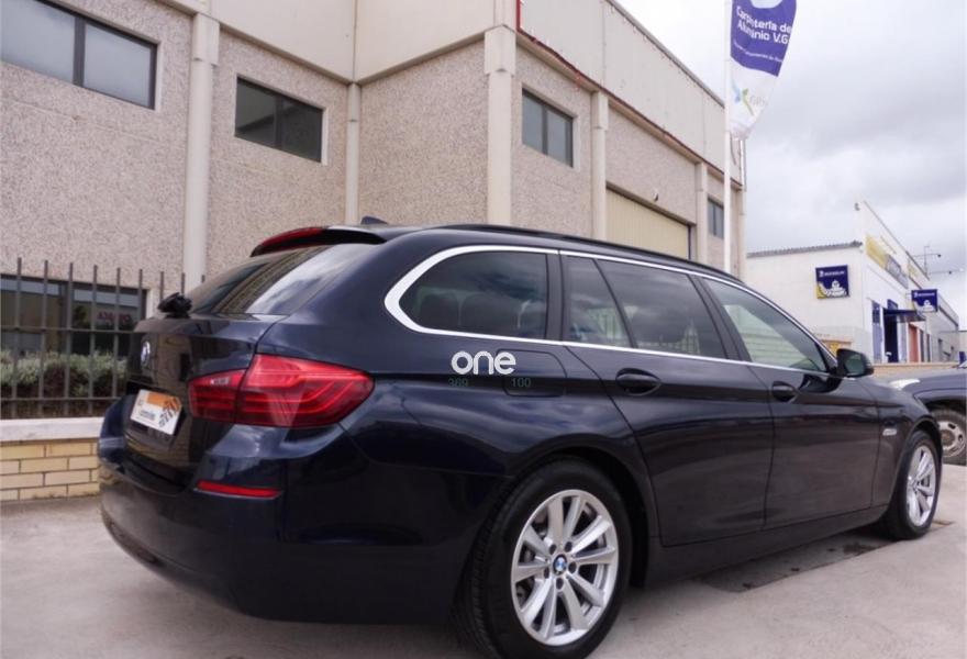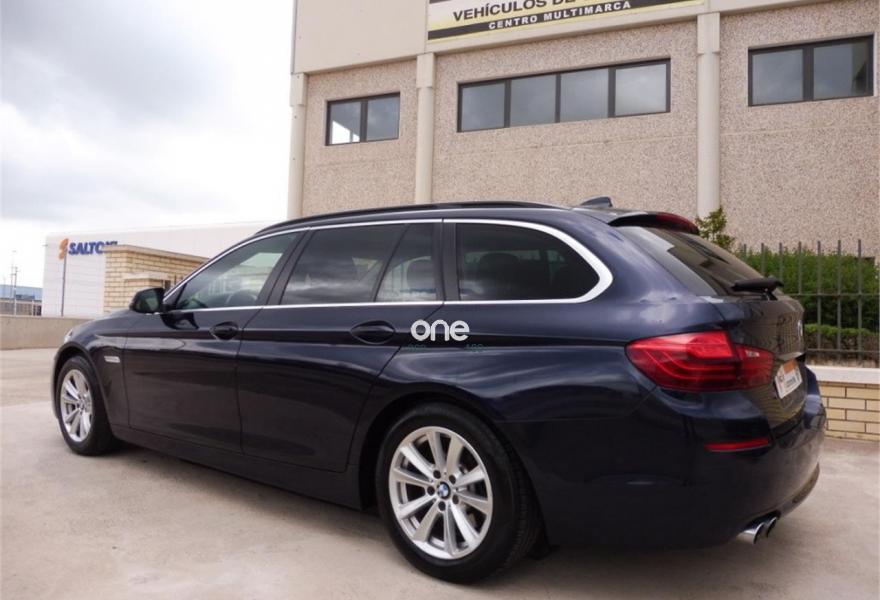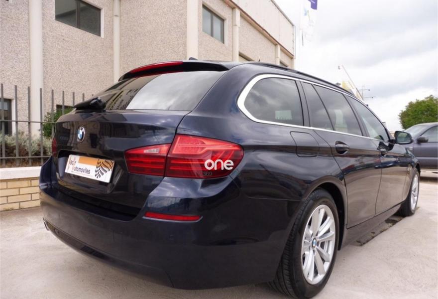BMW Serie 5, Diesel, año 2014, 140000 kilómetros, color Azul metalizado, precio 18500€. BMW 520D TOURING 184CV !!!!!!!!!!!! Vehiculo nacional, kms garantizados y certificados por escrito.{[n]}{[n]}EQUIPAMIENTO:{[n]}{[n]}*Pintura metalizada.{[n]}*Cambio manual de 6 velocidades.{[n]}*Tapicería de tela antracita.{[n]}*Volante multifunción.{[n]}*Sensor de luces y lluvia.{[n]}*Asientos eléctricos.{[n]}*Control de velocidad.{[n]}*Climatizador bizona.{[n]}*Ordenador de a bordo.{[n]}*Radio cd.{[n]}*Navegador bussines.{[n]}*Bluetooth.{[n]}*Star- stop.{[n]}*Faros de xenón.{[n]}*Sensor de aparcamiento delantero y trasero.{[n]}*Cámara marcha atrás.{[n]}*Portón trasero eléctricos ( maletero ).{[n]}*Llantas de aluminio.{[n]}{[n]}El coche esta impecable tanto de interior como de exterior.{[n]}Esta en perfecto estado de mecánica.{[n]}{[n]}Se entrega revisado y con aceites y filtros cambiados.{[n]}{[n]}Lleva IVA DEDUCIBLE ya incluido en el precio tanto para autónomos como para empresas.{[n]}{[n]}+++ PRECIO DE OFERTA SUJETO A FINANCIACIÓN +++ Sino se desea financiar consultar +++{[n]}{[n]}Se entrega con 12 MESES DE GARANTÍA.{[n]}{[n]}En el precio esta incluido el CAMBIO DE NOMBRE.{[n]}.