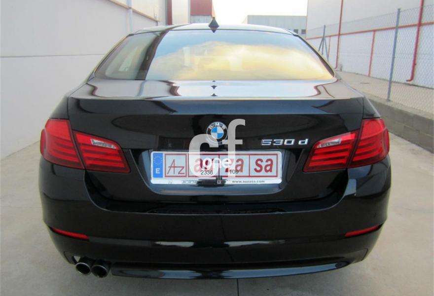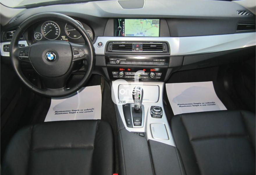 BMW Serie 5, Diesel, año 2011, 95000 kilómetros, color Negro metalizado, precio 27200€. Asistente de aparcamiento,Alfombrillas de velours,Cuero 'Dakota',Molduras interiores de aluminio rectificado de precisión,Conexión ampliada del reproductor de musica en el teléfono móvil,Interfaz USB audio,Sintonizador DAB,Sistema de altavoces HiFi,Sistema de navegación Professional,Tomas de corriente adicionales de 12 V,Cambio automático Steptronic,Climatizador con regulación de 4 zonas,Control por voz,Faros xenón para función de luz de cruce y de carretera,Lavado de faros,Luces autoadaptables,Luz ambiente,Preparación para teléfono móvil con interfaz Bluetooth,Retrovisor interior, con ajuste automático anti-deslumbramiento,17", llantas de aleación ligera Streamline (estilo 363),Confort climático para parabrisas,Espejos retrovisores interior y exteriores con ajuste automático anti-deslumbramiento,Pintura metalizada,Reglaje eléctrico de los asientos, con memoria,Supresión del anagrama de modelo,Surround View,Cámara para marcha atrás,Control de distancia en aparcamiento (PDC),Neumáticos con funcionamiento en caso de avería,Accionamiento automático del portón trasero. TOTALMENTE NUEVO.