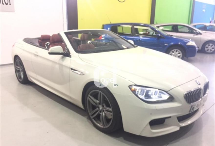 BMW Serie 6, Diesel, año 2012, 108000 kilómetros, color Blanco metalizado, precio 42990€. Vehiculo Naional, PAQUETE M INTERIOR Y EXTERIOR. Muy equipado con más de 20.000 euros en extras, tapicería de cuero dakota con asientos deportivos, sistema de navegación professional, faros bixenon autoadaptables, adaptive drive que incluye Control dinámico de suspensión y Dynamic Drive (estabilizadoras activas), Head-Up Display, asientos eléctricos con memorias y calefacción,, parktronic, advertencia de cambio de carril, start-stop, levas al volante, sistema isofix, bluetooth, climatizador bizona, conexión usb y auxiliar, llantas de aleación 19", sensor de lluvia y luces, regulador de velocidad, volante multifunción, ordenador de abordo, espejos abatibles eléctricamente, alarma antirrobo.... 48990.
