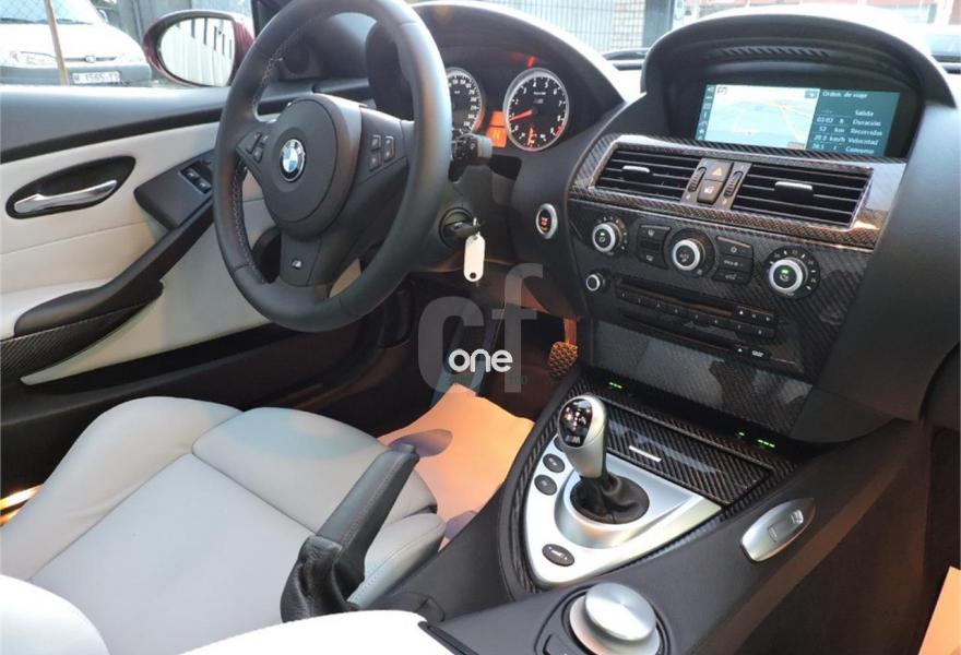 BMW Serie 6, Gasolina, año 2007, 14382 kilómetros, color Granate metalizado, precio 39990€. Cuero Merino ampliado Silverstone,Sistema de autocierre para las puertas,Molduras interiores 'Carbon Fibre',Retrovisores exteriores antideslumbrami.,Portabebidas,Asistente de luz de carretera,Sistema de navegación Professional,Control por voz,Pre. teléfono móvil tecnología Bluetooth,Rueda de repuesto. BMW M6 Coupé