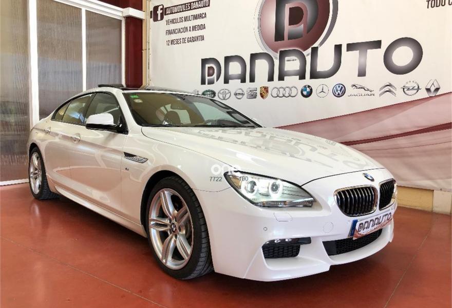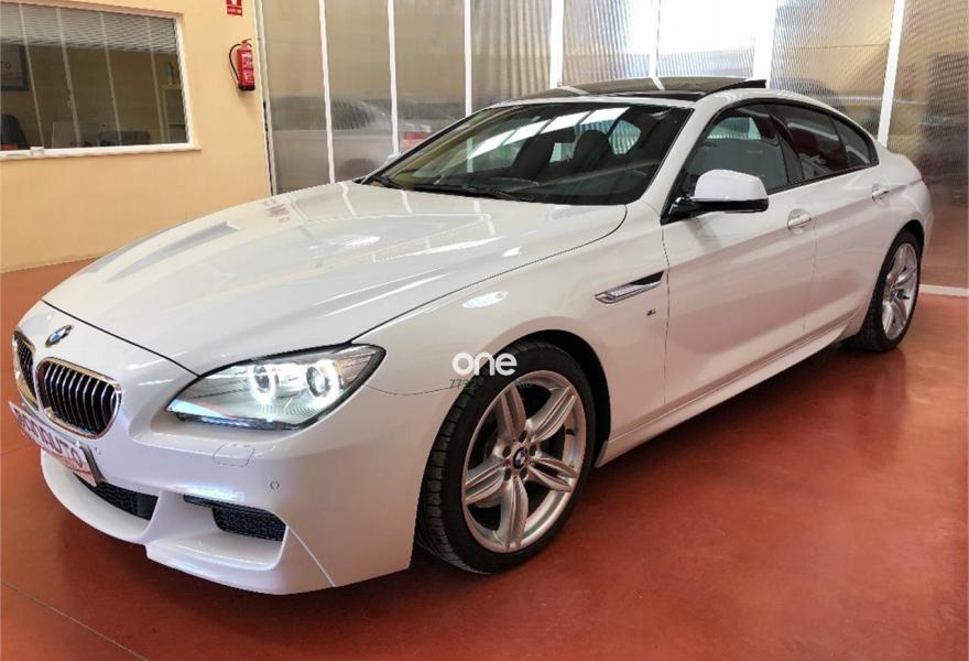 BMW Serie 6, Diesel, año 2013, 89000 kilómetros, color Blanco , precio 42900€. M Sport Edition,Cuadro de instrumentos multifuncional,Asientos de confort delanteros, con reglaje eléctrico,Asientos deportivos para conductor y acompañante,Combinación Alcántara/cuero 'Nappa',Molduras interiores Aluminium Hexagon,Tablero de instrumentos revestido de cuero,Intercambiador DVD de 6 discos,Sistema HiFi Professional,Acceso confort,Combinación Alcántara/cuero 'Nappa' Anthrazit,Sistema de navegación Professional,Volante M de cuero,Techo de cristal, eléctrico,19'', llantas de aleación ligera M de radios dobles (estilo 351 M) con neumáticos de diferentes dimensiones,Asistente de aparcamiento,BMW Head-Up Display. BMW SERIE 6 640D GRAN COUPE 313CV PACK M 5 PLAZAS
