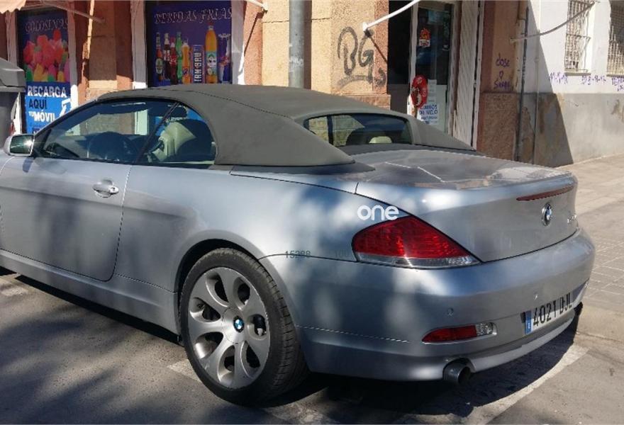 BMW Serie 6, Gasolina, año 2006, 160000 kilómetros, color Gris / Plata , precio 14500€. Cuero Exclusive Pearl,Portabebidas,Revestimiento madera noble abedul clara,Soporte lumbar en asientos delanteros,Intercambiador BMW de 6 CD,Pre. teléfono móvil tecnología Bluetooth,Radio BMW Professional,Sintonizador de TV,Sistema de navegación Professional,Sistema HiFi Professional Logic7,Acceso confort,Capota gris,Control de crucero activo,Control por voz,Franja verde en el parabrisas,Paquete de iluminación,Red portaobjetos,Volante M de cuero,Llantas aleación diseño elipsoidal (121). espectacular cabrio para disfrutar al máximo este verano y muchos mas.el coche tiene todas las revisiones al dia la ultima hace unos 700 kms..