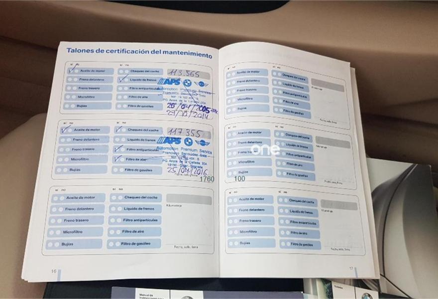 Historial de revisiones al dia pasadas y selladas en libro por taller BMW.