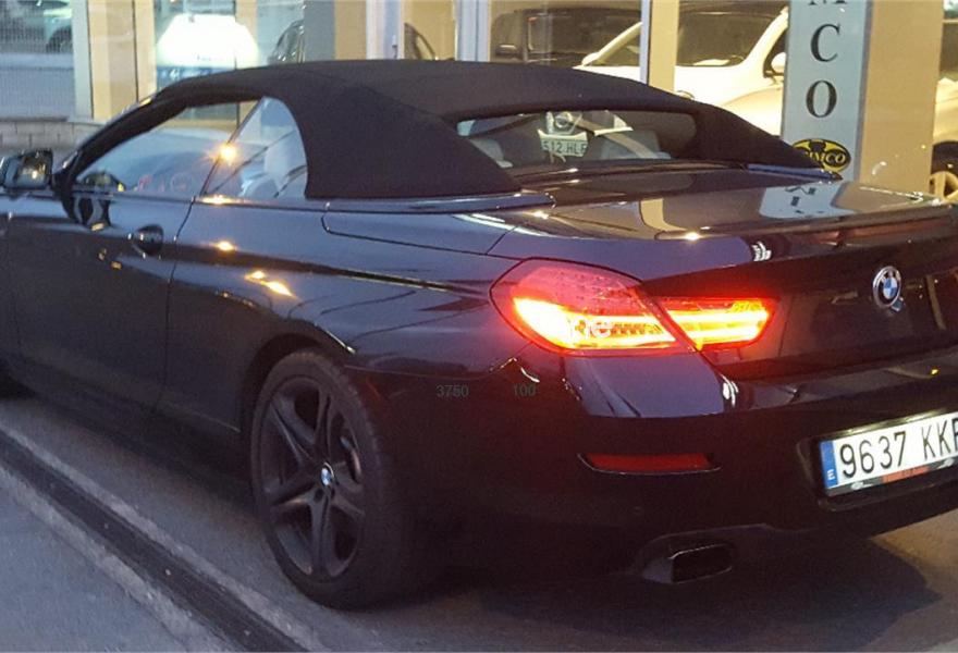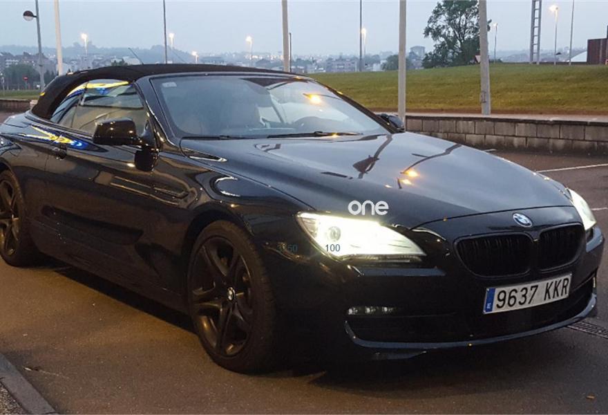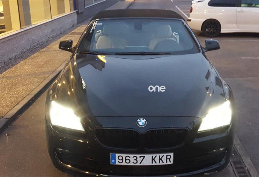 BMW Serie 6, Diesel, año 2012, 68000 kilómetros, color Negro (interior en cuero beis) metalizado, precio 39990€. Adaptive Drive,Calefacción de los asientos delanteros,Ventilación activa de los asientos delanteros,Intercambiador DVD de 6 discos,Sistema de navegación Professional,Advertencia de cambio de carril,Asistente de luz de carretera,Capota de color negro,Control por voz,Faro de LED adaptativo,Franja gris en el parabrisas,Faros antiniebla de LED. IMPECABLE, directamente de la BMW. valor NUEVO 109000 EU.todos los extras,NAVEGADOR,DISPLAY,cuero,xenon,equipo de escape deportivo con cambio de sonido,tempomat con detector de obstaculos Y CONDUCCION AUTOMATICA ,arranque sin llave,telefono,bluethoot, RED cortavientos trasero, asientos calefactados etc,etc