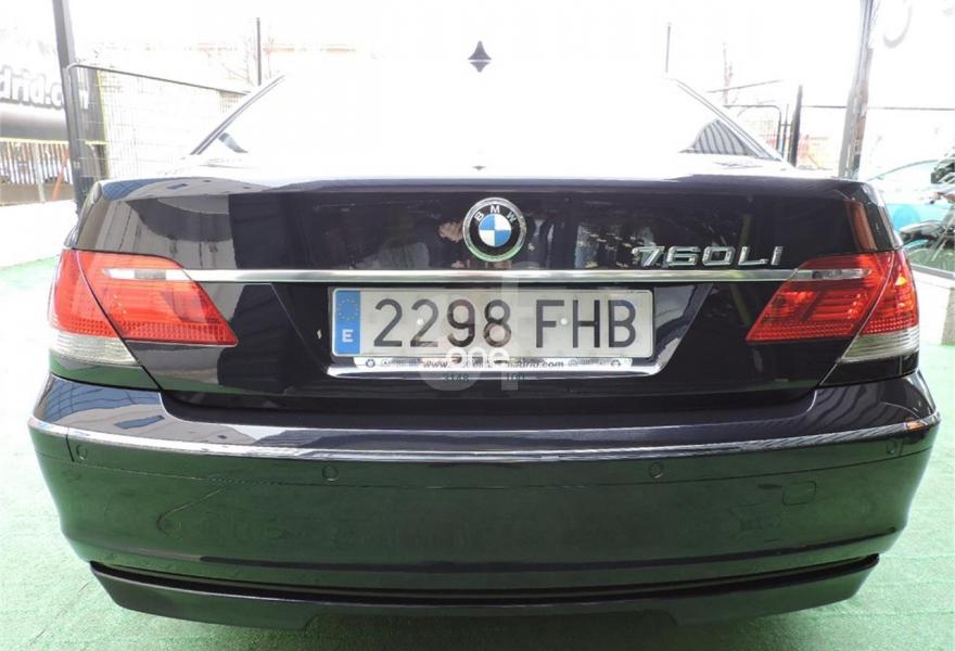 BMW Serie 7, Gasolina, año 2006, 23000 kilómetros, color Negro metalizado, precio 24990€. Monacoblau (metalizado),Cuero Nasca Creambeige,Techo corredizo de cristal eléctrico,Alfombrillas de velours,Ventilación activa asientos delanteros,Ventilación activa de asientos traseros,Calefacción en los asientos traseros,Aire acondicionado trasero (comp. refr.),Control de crucero activo,Sintonizador de TV,Monitor en la parte trasera,Control de voz,Preparación teléfono móvil con Bluetooth,DVD con cambiador de 6 discos. BMW 760LI V12