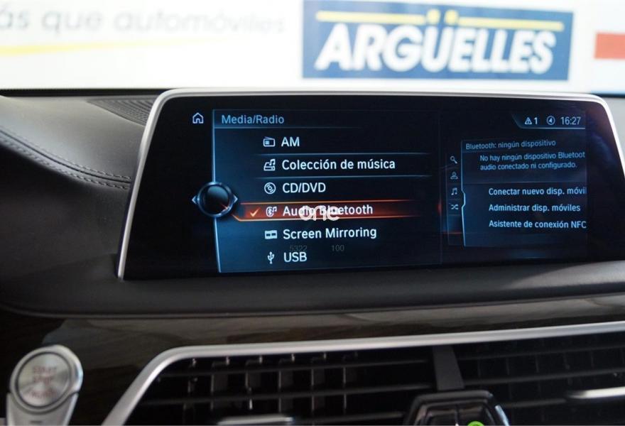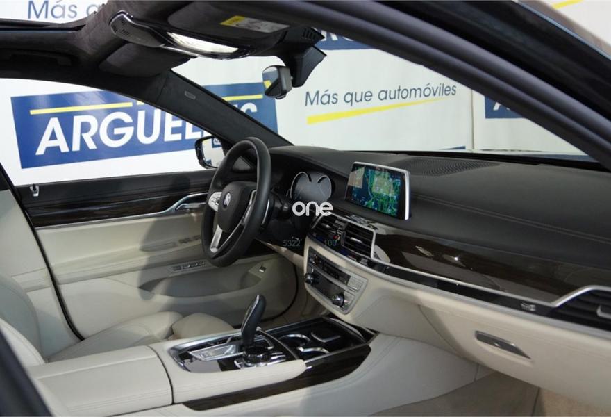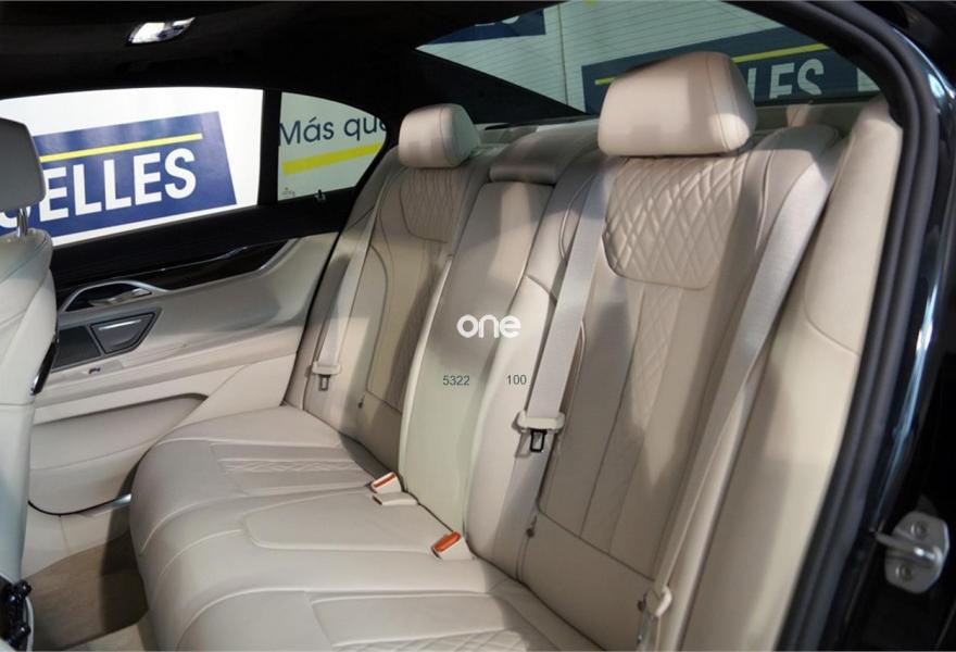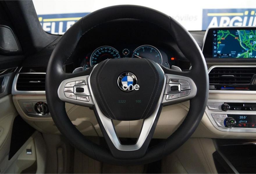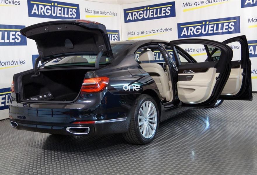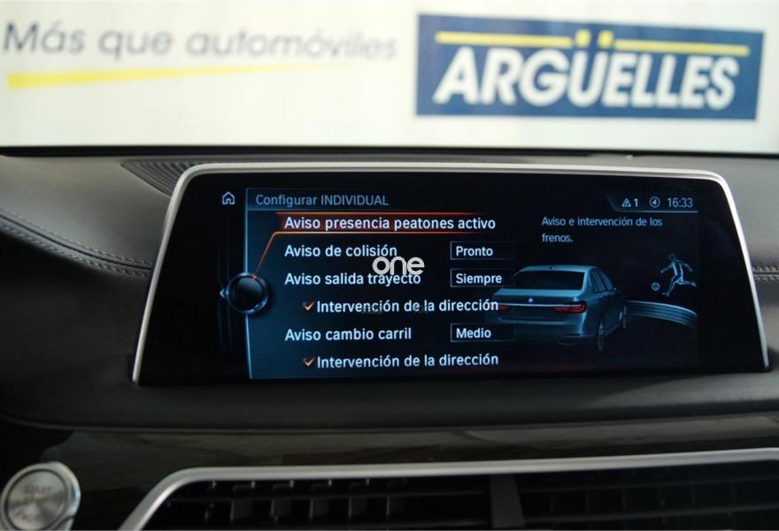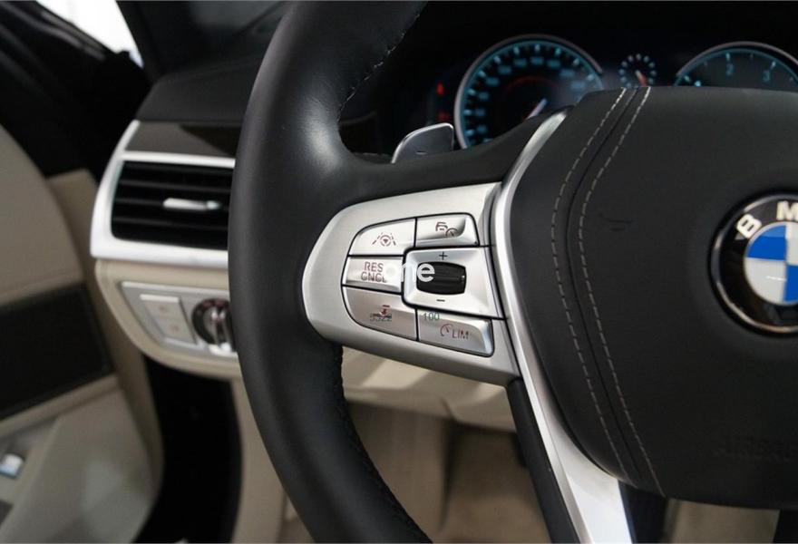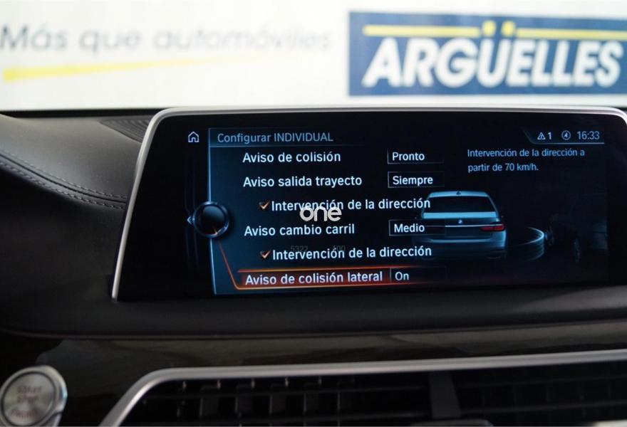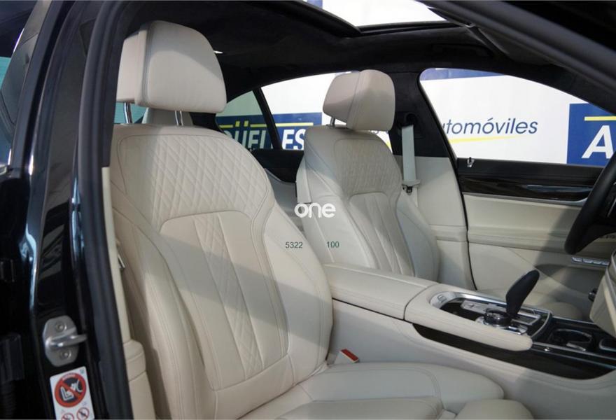 BMW Serie 7, Diesel, año 2016, 3143 kilómetros, color Negro metalizado, precio 74500€. Cuero exclusivo 'Nappa' con contenido ampliado,Cuero exclusivo 'Nappa' con contenido ampliado Elfenbeinweiss/Elfenbeinweiss,Saphirschwarz (metalizado),Pintura metalizada,Acceso confort,BMW Touch Command,Techo de cristal, eléctrico,Acristalamiento de protección solar,Asientos de confort delanteros, con reglaje eléctrico,Faros antiniebla de LED,Asistente de aparcamiento,Revestimiento de madera noble 'Fineline' de brillo intenso,Climatizador con regulación de 4 zonas,Control crucero activo con función Stop&Go,Tablero de instrumentos revestido de cuero,Faros LED autoadaptables,Inserción de cerámica para elementos de mando,Asistente de luz de carretera,Driving Assistant Plus,Sistema de sonido surround Harman Kardon,Surround View,BMW Head-Up Display,Internet,Guarnecido interior del techo BMW Individual de Alcántara. IVA deducible, vehículo NACIONAL de único propietario, unidad única con más de 24.000 euros en extras costando nuevo más de 120.000 euros, mantenimiento pagado hasta 2021, techo solar, tapicería en cuero exclusivo Nappa con asientos delanteros eléctricos de comfort con memorias, Head-Up display, suspensión neumática autonivelante, control de crucero ADAPTATIVO, asistente de salida involuntaria de carril y de vehículos en ángulo muerto, sistema de navegación Professional, faros LED autoadaptables, asientos con calefacción, cámaras de aparcamiento 360 grados junto con sensores, equipo de sonido surround Harman Kardon, acceso y arranque sin necesidad de llave, climatizador 4 zonas, tablero de instrumentos revestido en cuero, techo tapizado en alcántara, lunas traseras tintadas, inserciones en madera, start-stop, volante multifunción con levas de cambio y ajuste eléctrico, sensor de lluvia y luces, bluetooth. CONSULTAR LISTADO COMPLETO OPCIONALES +24.000 euros..