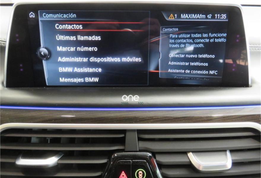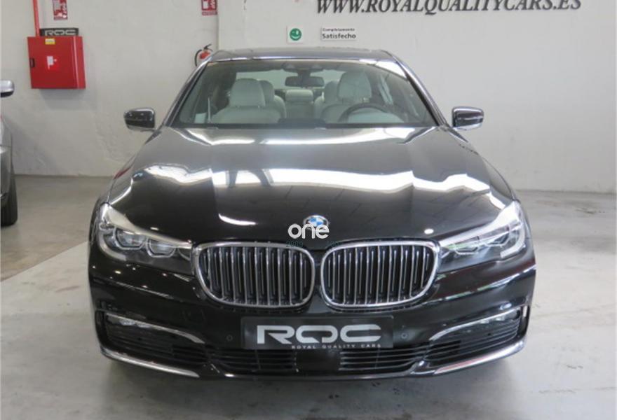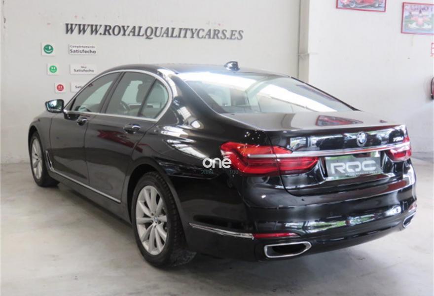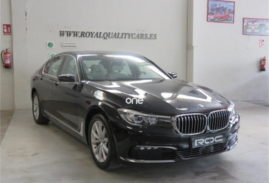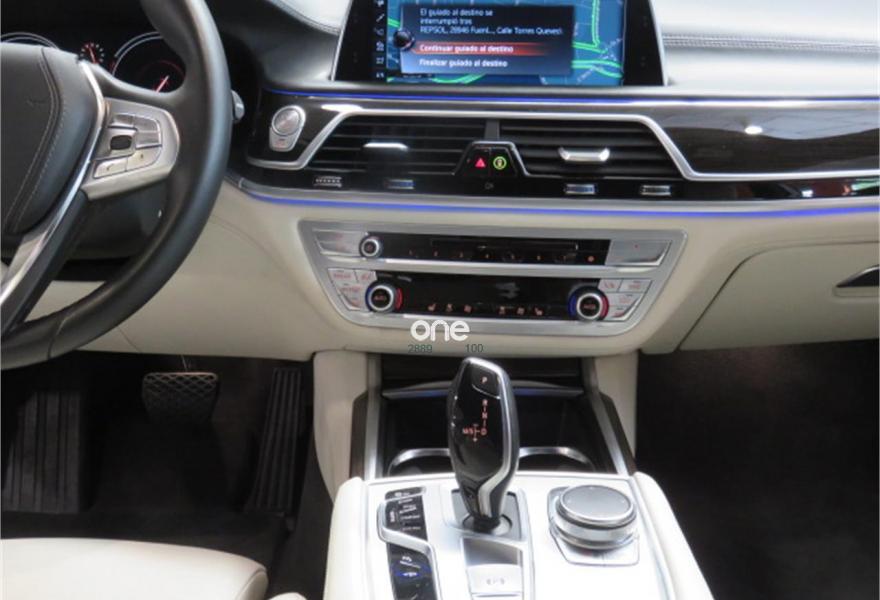 BMW Serie 7, Diesel, año 2017, 139000 kilómetros, color Negro (OPORTUNIDAD MANTENIMIENTO AL DÍA 100% FINANCIACIÓN) metalizado, precio 53990€. Faros antiniebla de LED,Asientos de confort delanteros, con reglaje eléctrico,Asientos de confort traseros eléctricos,Calefacción asientos delanteros y traseros,Cuero exclusivo 'Nappa' con contenido ampliado Canberrabeige/Canberrabeige,Revestimiento de madera noble veta de álamo claro,Ventilación activa de los asientos delanteros,Acceso confort,Asistente de luz de carretera,Control crucero activo con función Stop&Go,Faros LED autoadaptables,Luces traseras de lectura BMW Individual,Techo de cristal, eléctrico,Pintura metalizada,18", llantas de aleación ligera de radios en V (estilo 642) con funcionamiento en caso de avería. * IMPORTE DE CUOTAS FINANCIANDO LA TOTALIDAD AL MÁXIMO PLAZO: 740 EUROS AL MES