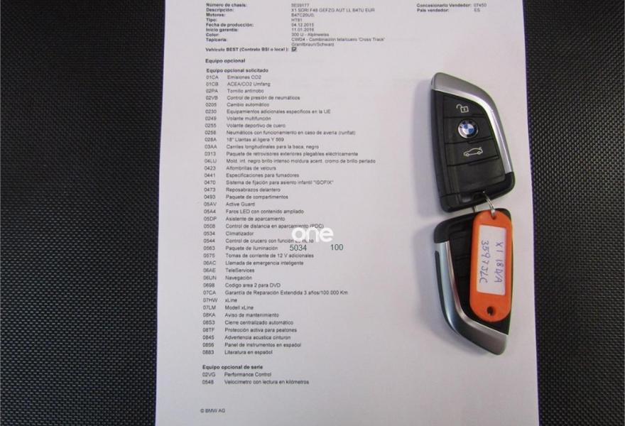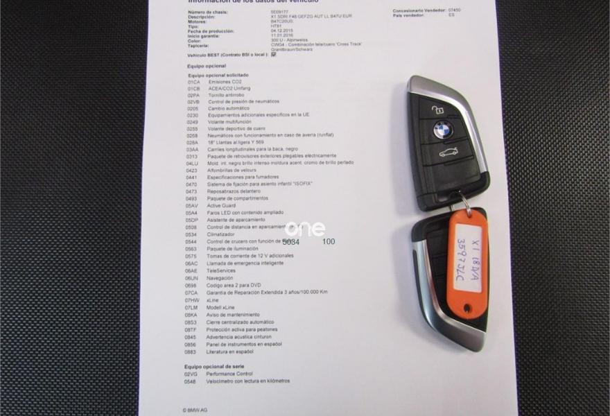 BMW X1, Diesel, año 2016, 26000 kilómetros, color Blanco , precio 28800€. xLine,Modelo xLine,Servicios ConnectedDrive,Toma de corriente de 12 V adicional,Caja de cambios Steptronic,Faros LED con contenido ampliado,Driving Assistant,Navegación,Tela/cuero 'Cross Track' Granitbraun/Schwarz,18", llantas de aleación ligera de radios en Y (estilo 566),Acristalamiento de protección solar,Control de distancia en aparcamiento (PDC) delantero y trasero,Asistente de aparcamiento. VEHICULO EN PERFECTO ESTADO++NACIONAL++TAN SOLO 26KM CERTIFICADOS EN BMW++++MODELO XLINE+++