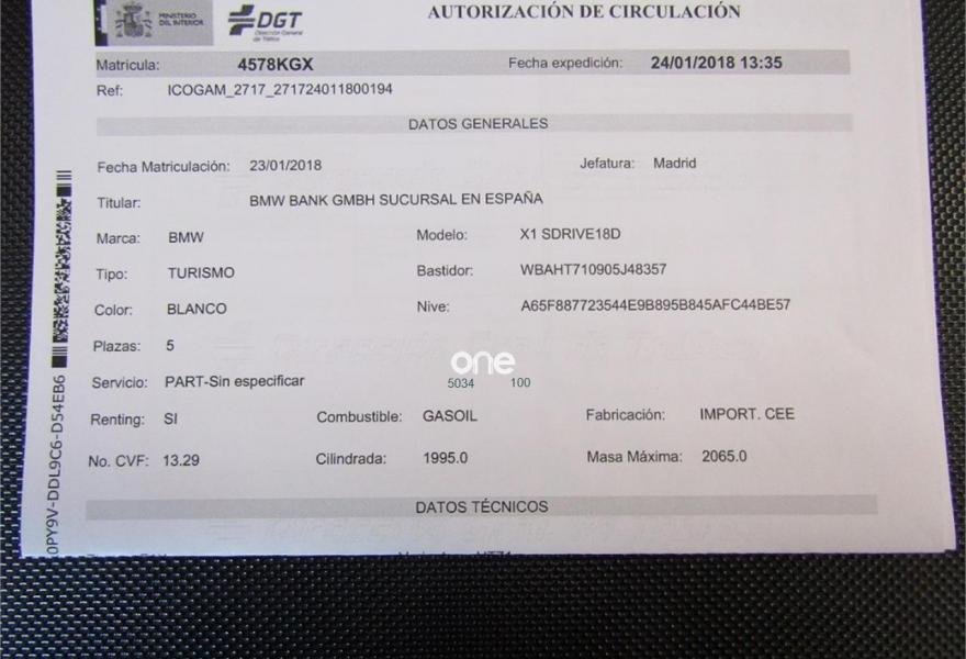 BMW X1, Diesel, año 2018, 8300 kilómetros, color Blanco , precio 27600€. Tela 'Race' Anthrazit/acentuación Rot/Schwarz,Toma de corriente de 12 V adicional,Caja de cambios Steptronic,Navigation Plus,17", llantas de aleación ligera de radios dobles (estilo 385),Acabado Advantage,Cámara para marcha atrás,Neumáticos con funcionamiento en caso de avería. VEHICULO EN PERFECTO++NACIONAL++CERTIFICADO POR ESCRITO DEL KILOMETRAGE++TAN SOLO 8000KM++++