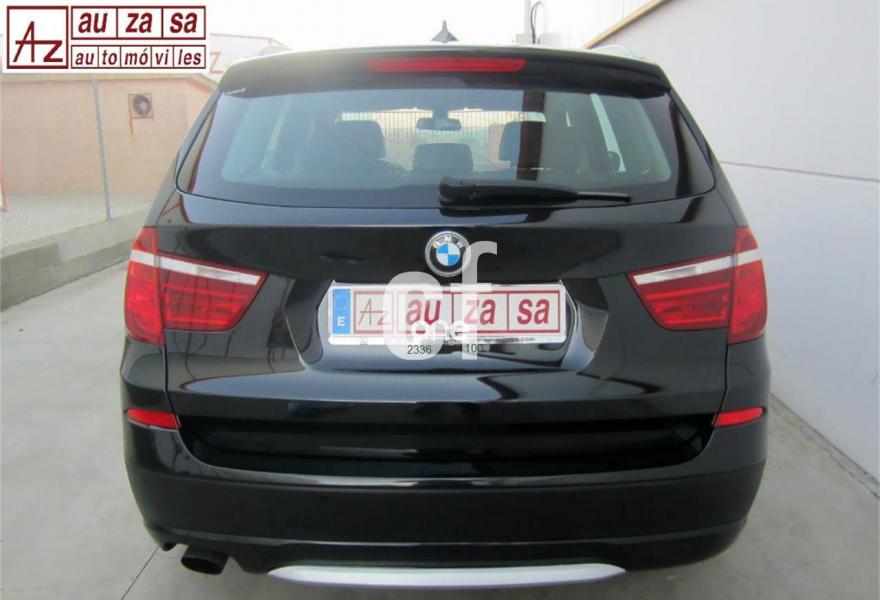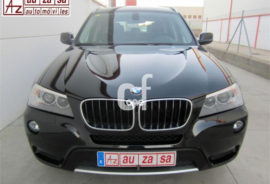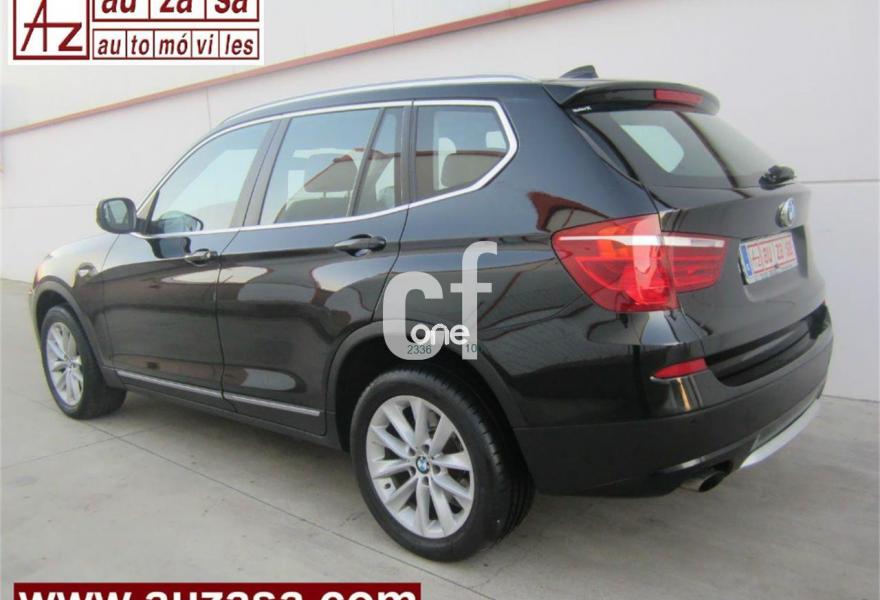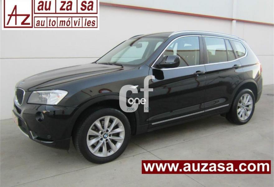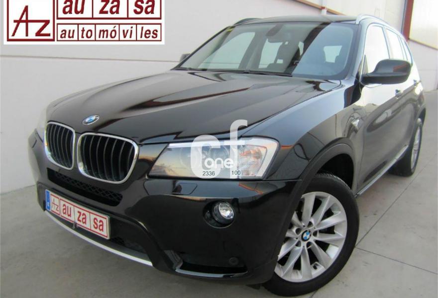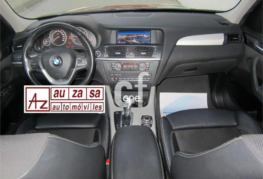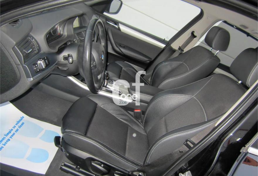 BMW X3, Diesel, año 2011, 120000 kilómetros, color Negro (Full Equipe) metalizado, precio 22700€. Asientos deportivos para conductor y acompañante,Cuero 'Nevada',Molduras interiores Aluminium con rectificado longitudinal fino,Paquete de compartimentos,Conexión para dispositivos Bluetooth y USB,Paquete de Comunicación Profesional,Sistema de altavoces HiFi,Sistema de navegación Professional,Sistema HiFi Professional,Cambio automático Steptronic,Espejos retrovisores interior y exteriores con ajuste automático anti-deslumbramiento,Faros bi-xenón,Lavado de faros,Luces autoadaptables,Franja gris en el parabrisas,Paquete de iluminación,Sensor de lluvia,Retrovisor interior con ajuste automático anti-deslumbramiento,Volante M de cuero,18" Llantas de aleación ligera de radios en V (estilo 307),Confort climático para parabrisas,Pintura metalizada,X Line,Control de distancia en aparcamiento (PDC) delante y detrás,Desactivación del airbag del acompañante,Dispositivo manos libres con interfaz USB,Conexión ampliada del reproductor de música en el teléfono móvil,Carriles longitudinales para la baca Aluminium satinado,Línea Exterior BMW Individual Aluminium satinado. * COMO NUEVO. Procedente directamente de Red Oficial BMW.