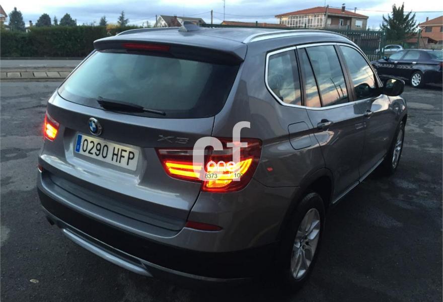 BMW X3, Diesel, año 2011, 129100 kilómetros, color Gris / Plata (PLATINO) metalizado, precio 23700€. Estado impecable, con certificación de kilometraje real, admitimos su vehículo a cambio , vehículo matriculado el 07/2011, cambio de titularidad incluido en el precio, garantía 12 meses,reducido consumo , consumo extra urbano de 5 l a los 100 km , diesel de 184 CV con tracción integral automática X-Drive, arranque y apertura vía bluetooth con llave inteligente, sistema IXOFIX (niños) ,asistente de ayuda arranque en pendiente, diez air-bag, dirección adaptativa, control de tracción y estabilidad (ESP) ,volante multifuncion,control de crucero (Control cruise), inmovilizador antirrobo, seis velocidades, equipo de telefonía BLUETOOTH...Financiación. Taller propio..