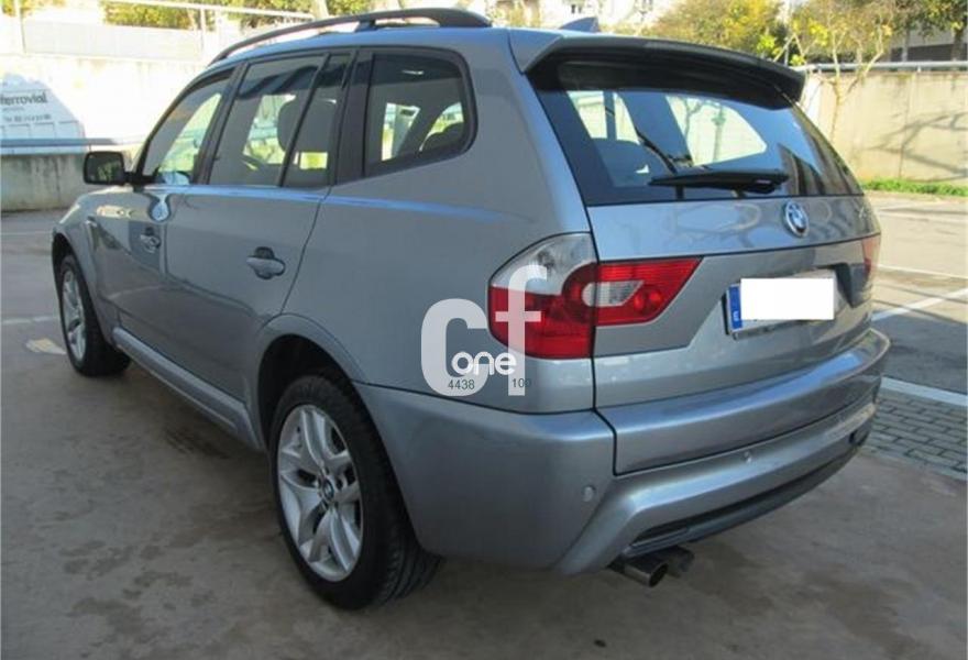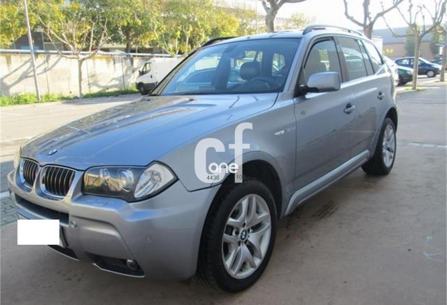 BMW X3, Diesel, año 2006, 119000 kilómetros, color Gris / Plata (MAXIMO EQUIPAMIENTO.NACIONAL LIBRO REV1) metalizado, precio 13990€. Alfombrillas de velours,Asientos deportivos conductor/pasajero,Calefacción de los asientos delanteros,Paquete de compartimentos (3.0),Re. eléctrico asientos (cond. c/memoria),Revestimien. interior de aluminio pulido,Soporte lumbar en asientos delanteros,Tapicería de cuero Ambiente,Intercambiador de 6 CD,Sistema de navegación Professional,Dispositivo de alarma,Espejos int. y ext. antideslumbramiento,Faros xenón luz de cruce y carretera,Lavado de faros,Sensor lluvia/conexión automática luces,Techo panorámico de cristal,Volante M en cuero,Pintura metalizada,Llantas aleación M radios en Y (191 M),Estribos de aluminio,Paquete deportivo M,Cambio automático 3.0d,Suspensión deportiva,Airbag laterales y de cabeza traseros,Control de distancia aparcamiento (PDC),Triángulo de emergencia y botiquín,Sist. fijación ISOFIX asiento delantero.