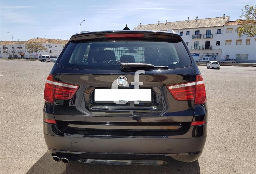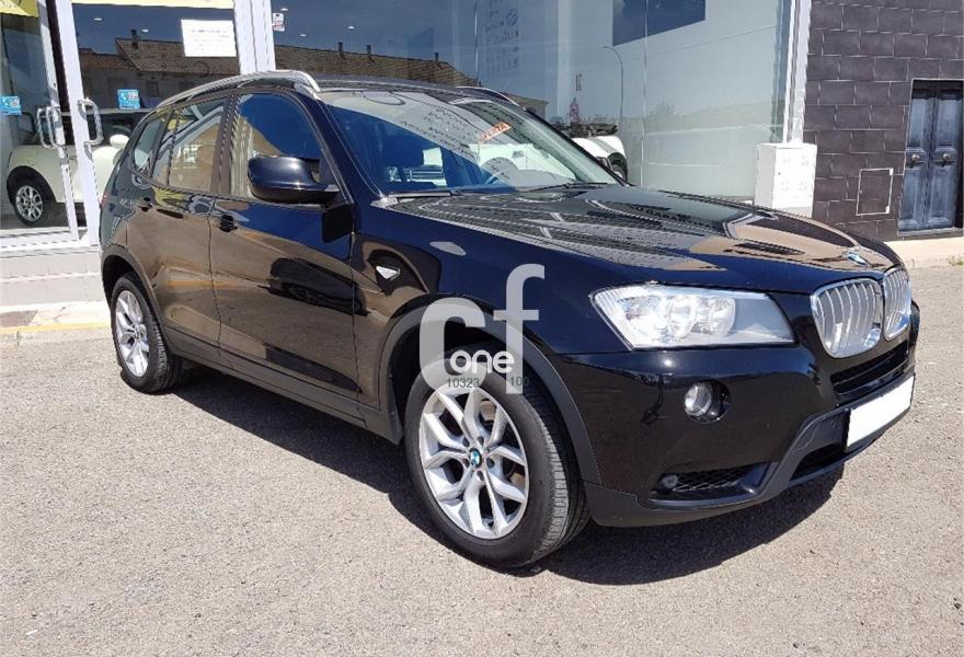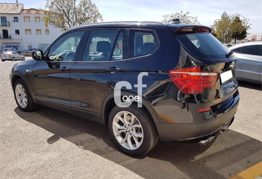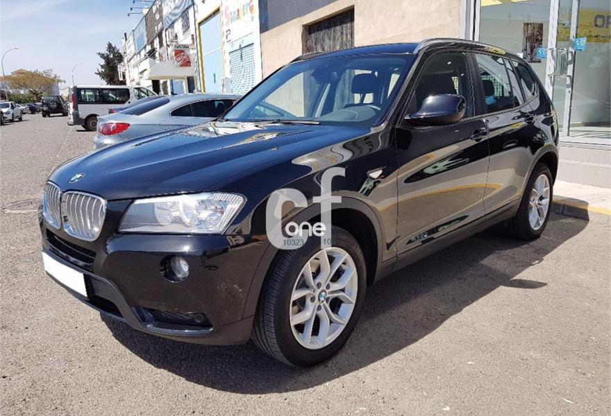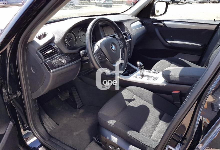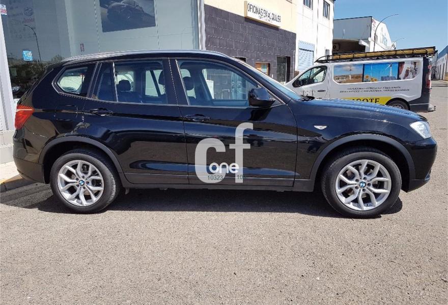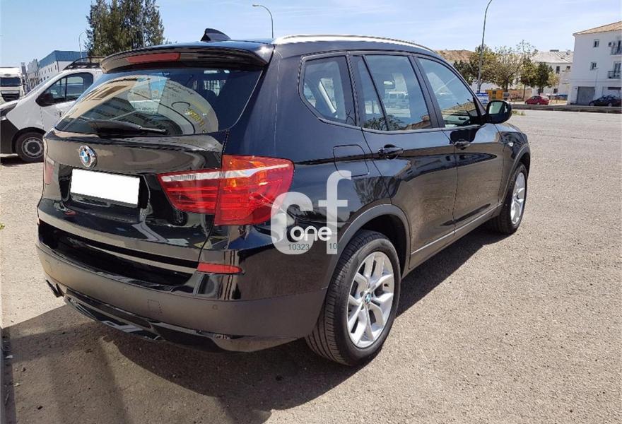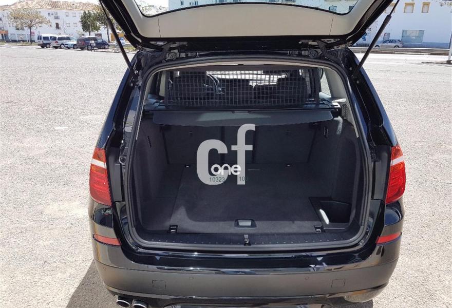 BMW X3, Diesel, año 2013, 158000 kilómetros, color Negro metalizado, precio 24900€. Paquete Business (sólo para empresas/flotas y autónomos),Paquete de Comunicación Profesional,Paquete Visibilidad,Calefacción de los asientos delanteros,Molduras interiores Aluminium con rectificado longitudinal fino,Paquete de compartimentos,Conexión para dispositivos Bluetooth y USB,Dispositivo manos libres con interfaz USB,Sistema de navegación Business,Sistema HiFi Professional,Dispositivo de alarma,Espejos retrovisores interior y exteriores con ajuste automático anti-deslumbramiento,Paquete de iluminación,Retrovisor interior con ajuste automático anti-deslumbramiento,Sensor de lluvia,Telefonía de confort con conexión ampliada para Smartphone,Volante deportivo multifunción de cuero con levas de cambio,18" Llantas de aleación ligera de radios en Y (estilo 308),Acristalamiento de protección solar,Carriles longitudinales para la baca BMW Individual Shadow Line de brillo intenso,Confort climático para parabrisas,Cambio automático deportivo Steptronic,Control dinámico de la suspensión,Control de distancia en aparcamiento (PDC) delante y detrás. Paquete Business