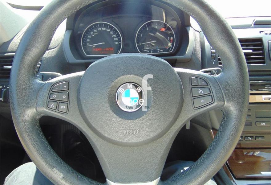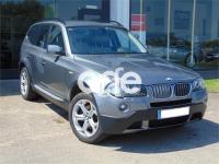 BMW X3, Diesel, año 2009, 153868 kilómetros, color Gris / Plata (Spacegrau) metalizado, precio 12900€. Edition Exclusive,Cuero 'Nevada',Molduras interiores de madera noble nogal claro,Paquete de fumadores,Paquete de iluminación,Reposabrazos delantero,Cuero 'Nevada' Oyster,Faros xenón para función de luz de cruce y de carretera,Lavado de faros,Sensor de lluvia y accionamiento automático de las luces de cruce,Volante deportivo de cuero,Estribos de aluminio,Pintura metalizada,Spacegrau (metalizado),Supresión del anagrama de modelo,Control de distancia en aparcamiento (PDC). Vehículo en perfecto estado, muy cuidado y con un completo equipamiento.