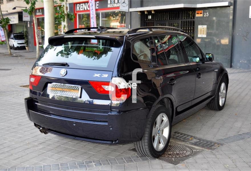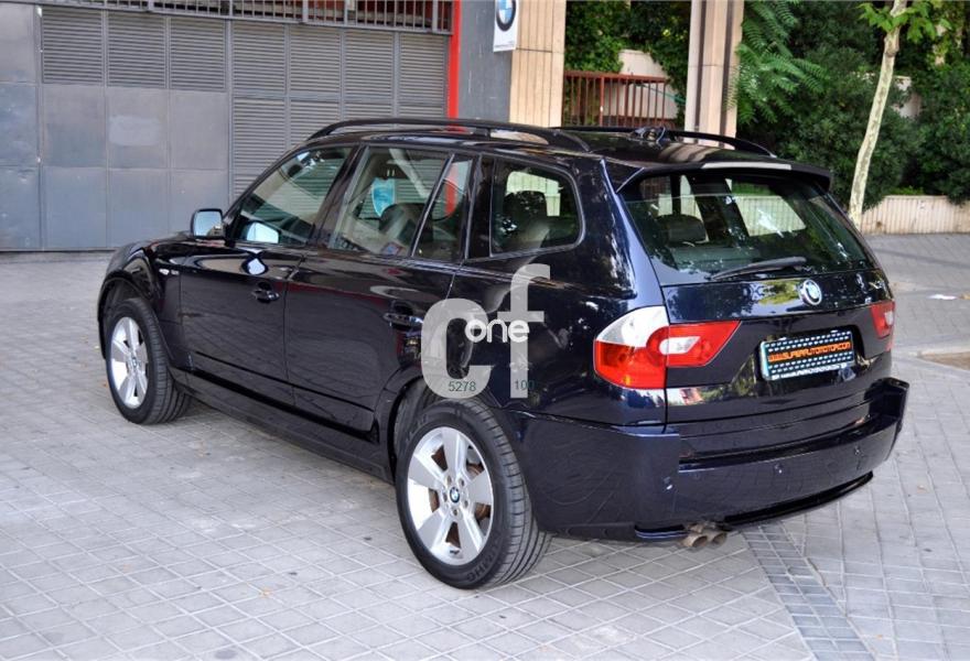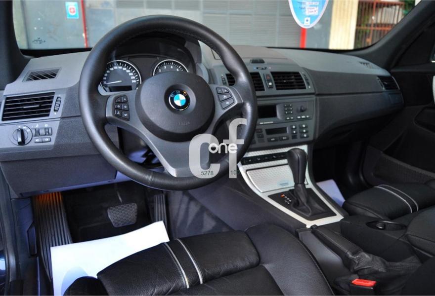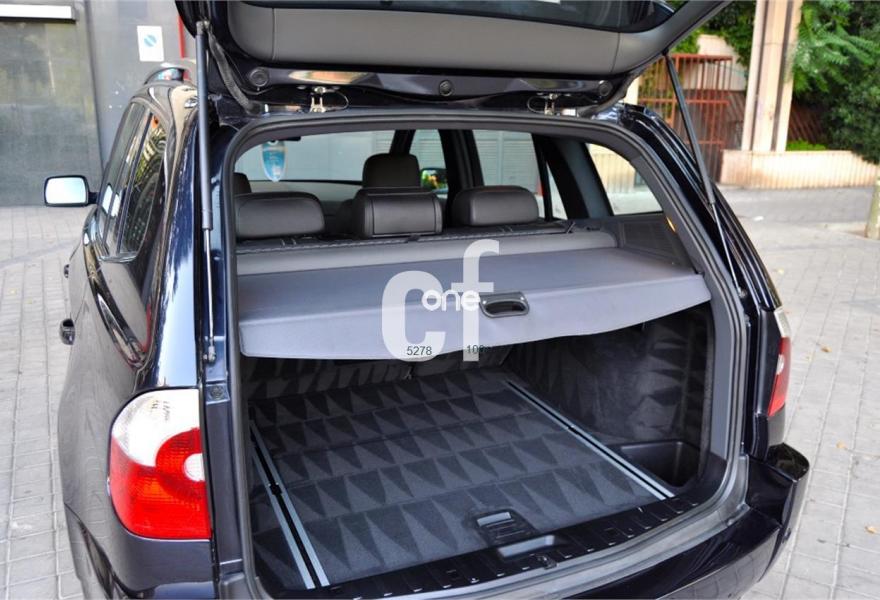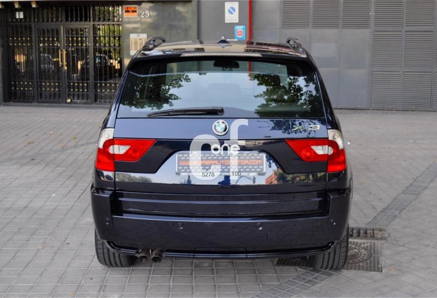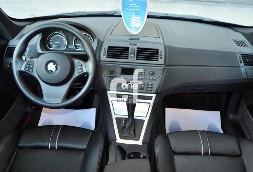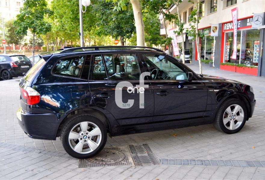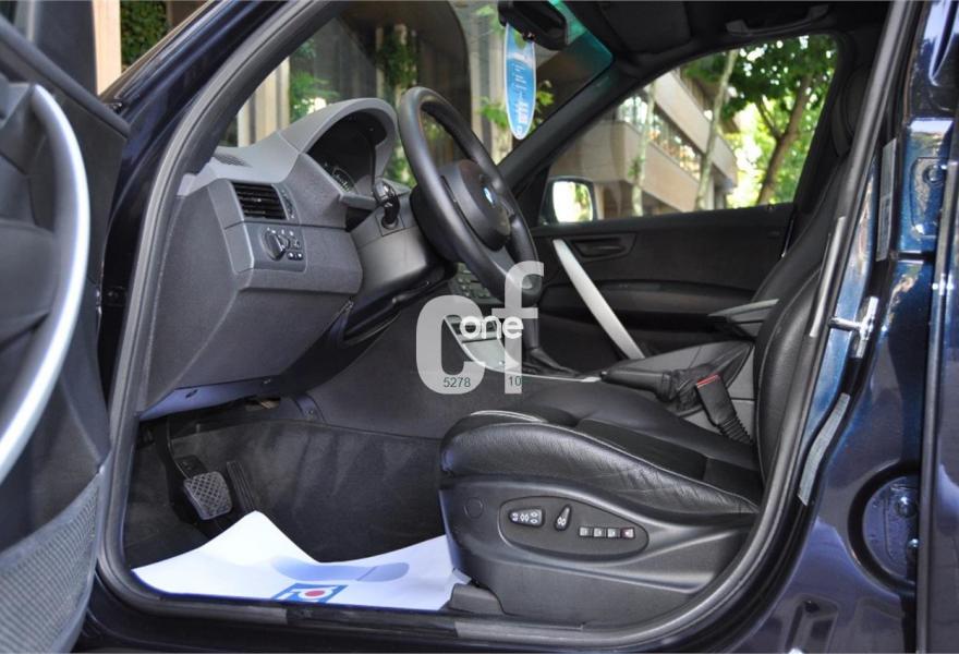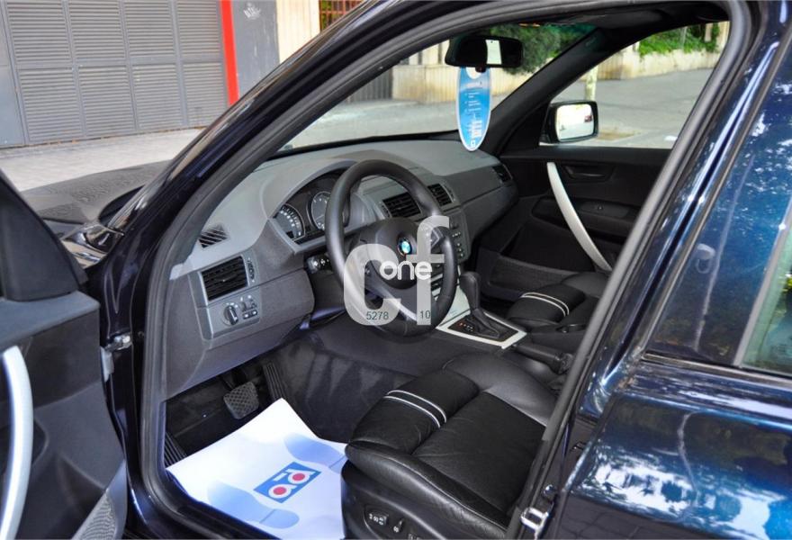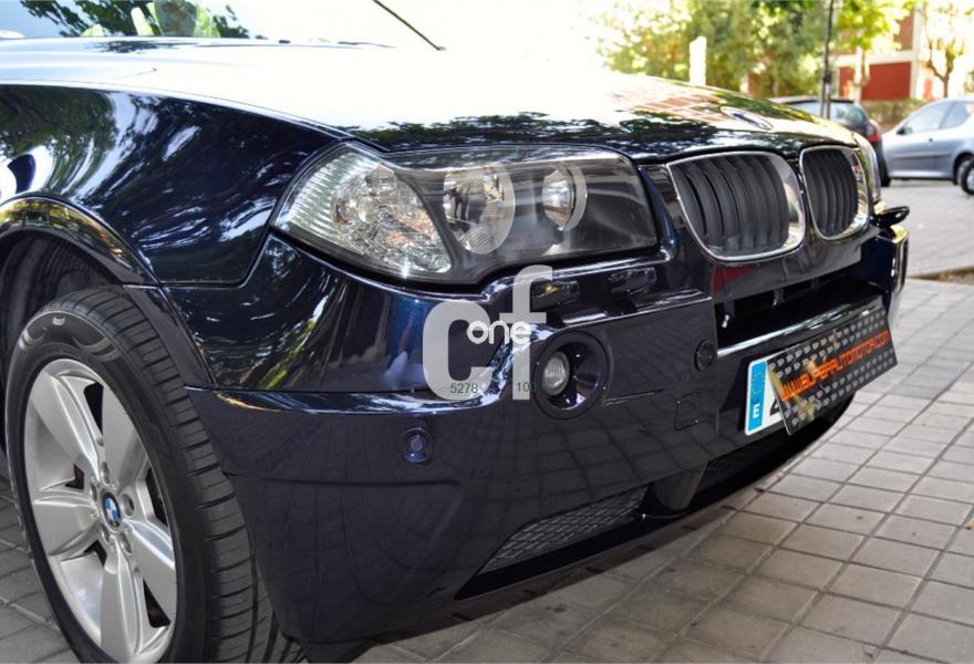 BMW X3, Gasolina, año 2005, 89057 kilómetros, color Azul metalizado, precio 8900€. Alfombrillas de velours,Asientos deportivos conductor/pasajero,Paquete de compartimentos (3.0),Re. eléctrico asientos (cond. c/memoria),Revest. interior de aluminio pulido 3.0,Soporte lumbar en asientos delanteros,Tapicería de cuero Ambiente,Radio BMW Business CD,Sistema de navegación Business,Prep. teléfono móvil interfaz Bluetooth,Dispositivo de alarma,Lavado de faros,Sensor lluvia/conexión automática luces,Llantas aleación rad. estrella (113) M+S,Pintura metalizada,Cambio automático 3.0i,Airbag laterales y de cabeza traseros,Control de distancia aparcamiento (PDC),Triángulo de emergencia y botiquín,Sist. fijación ISOFIX asiento delantero,Volante multifuncional c/control crucero,Faros xenón luz de cruce y carretera,Paquete deportivo,Suspensión deportiva. BMW X3 -3.0 i