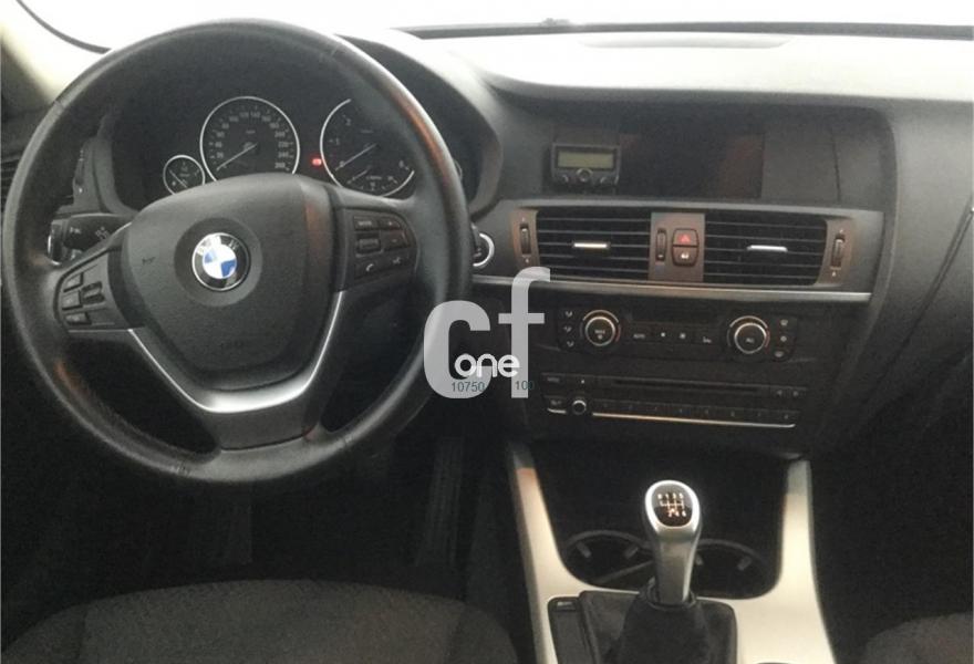 BMW X3, Diesel, año 2011, 137000 kilómetros, color Negro metalizado, precio 18500€. Paquete Comfort,Asientos deportivos para conductor y acompañante,Molduras interiores Aluminium con rectificado longitudinal fino,Paquete de compartimentos,Sistema de carga de objetos largos,Conexión para dispositivos Bluetooth y USB,Dispositivo manos libres con interfaz USB,Sistema de altavoces HiFi,Sistema de navegación Business,Sistema HiFi Professional,Espejos retrovisores interior y exteriores con ajuste automático anti-deslumbramiento,Faros bi-xenón,Paquete de iluminación,Sensor de lluvia,Tela 'Ribbon' Anthrazit,18", llantas de aleación ligera M de radios en estrella (estilo 368 M),Acristalamiento de protección solar,Black Sapphire (metalizado),Línea Exterior BMW Individual Aluminium satinado,Pintura metalizada,BMW Service Inclusive Plus - 5 años/100.000 km,Desactivación del airbag del acompañante. BMW - X3 XDRIVE 2. 0 D 184 CV MANUAL