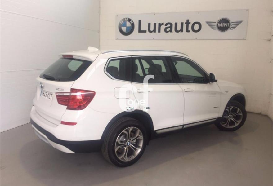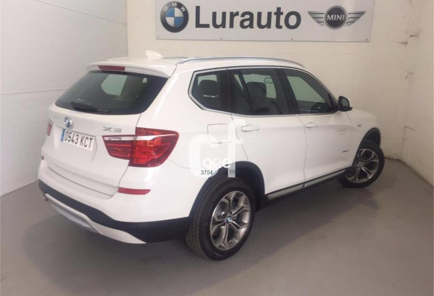 BMW X3, Diesel, año 2017, 13000 kilómetros, color Blanco , precio 36900€. 18" Llanta al.ligera radios en Y (607),Regeneración de la energía de frenado,Función automática Start/Stop,Control de presión de neumáticos, Servotronic,Volante multifunción,Volante deportivo de cuero,Neumáticos con funcionamiento en caso de avería (runflat),Apertura cierre automatizado del maletero,Embellecedores del tablero instrumentos negro de brillo intenso,Espejos eléctricos plegables con función antideslumbramiento,Sistema de carga variable,Calefacción de los asientos delanteros,Control de distancia en aparcamiento (PDC),Sensor de lluvia, incluyendo accionamiento automático de las luces de cruce,Faros xenón para función de la luz de cruce y de carretera,Climatizador,Control de crucero con función de freno,Paquete de iluminación,Disposit. manos libres con interfaz USB,Sistema de navegación Business,xLine, Cierre centralizado automático...Garantia oficial BMW hasta 08/2020 o 200.000 km.Concesionario oficial BMW Lurauto Oiartzun..
