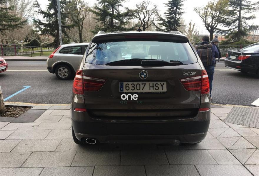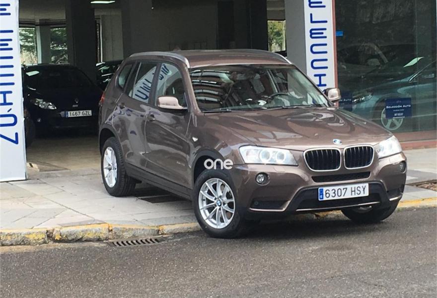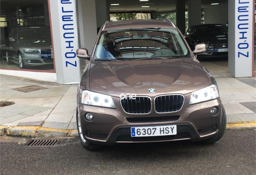 BMW X3, Diesel, año 2013, 169845 kilómetros, color Marrón metalizado, precio 19965€. Molduras interiores Aluminium con rectificado longitudinal fino,Dispositivo manos libres con interfaz USB,Sistema de navegación Business,Cambio automático,BMW TeleServices,Dirección deportiva variable,Dispositivo de alarma,Faros bi-xenón,Espejos retrovisores interior y exteriores con ajuste automático anti-deslumbramiento,Lavado de faros,Franja gris en el parabrisas,Sensor de lluvia,17" Llantas de aleación ligera de radios en Y (estilo 305),Control de distancia en aparcamiento (PDC) delante y detrás,Desactivación del airbag del acompañante. X3 X DRIVE 184 CV DIESEL Cambio Automatico 8 Velocidades Steptronic. Excelente estado. Km solo de carretera. Faros Bi-Xenón, Teléfono, Navegador, Dirección Eléctrica Servotronic, Partronick delantero y trasero, Control de crucero, Doble Clima, Ruedas nuevas Etc . Un solo propietario, Con libro de Revisiones, .Precio final 16.500 €+21%IVA 3.465 € = 19.965 € . Transferencia y un año de GARANTIA incluidos. Aceptamos su coche como parte de pago.