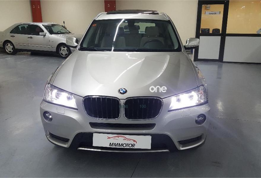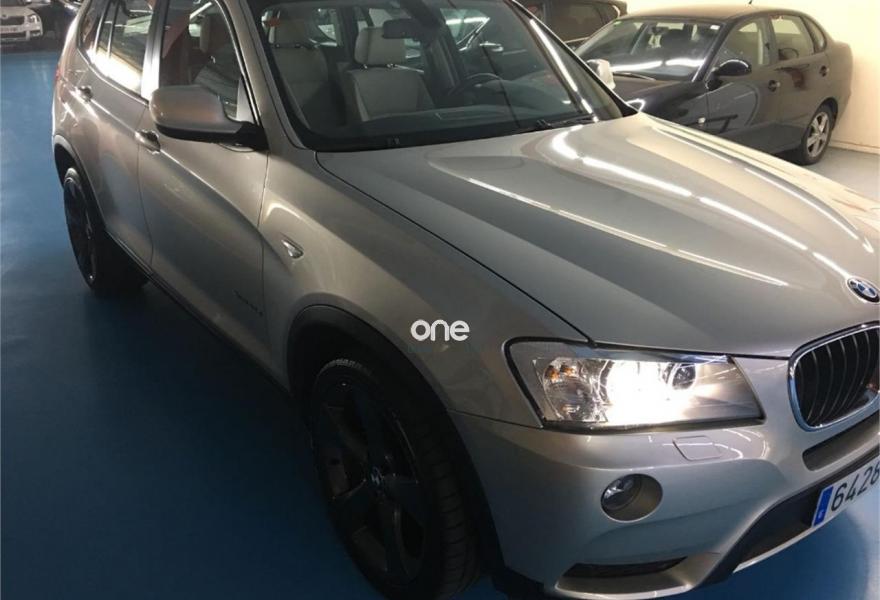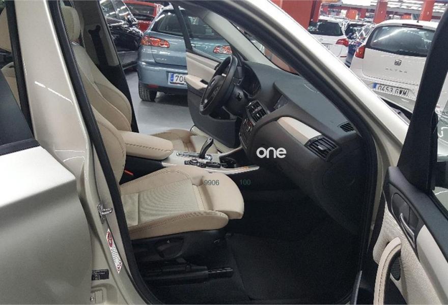 BMW X3, Diesel, año 2012, 88500 kilómetros, color Beige metalizado, precio 24900€. Paquete Visibilidad,Paquete Comfort,Asientos deportivos para conductor y acompañante,Tela/cuero 'Pearlpoint',Molduras interiores Aluminium con rectificado longitudinal fino,Conexión para dispositivos Bluetooth y USB,Dispositivo manos libres con interfaz USB,Intercambiador DVD de 6 discos,Sistema de altavoces HiFi,Cambio automático,Faros bi-xenón,Lavado de faros,Luces autoadaptables,Persiana solar mecánica en las ventanillas laterales traseras,Retrovisor interior con ajuste automático anti-deslumbramiento,Sensor de lluvia,Techo de cristal panorámico,Tela/Cuero 'Pearlpoint' Oyster,Volante M de cuero,Tren de rodaje de serie,Paquete de iluminación,Supresión del anagrama de modelo,Pintura metalizada,Carriles longitudinales para la baca BMW Individual Shadow Line de brillo intenso,Control dinámico de la suspensión,Control de distancia en aparcamiento (PDC) delante y detrás,Desactivación del airbag del acompañante. LLANTAS DE 20´´
