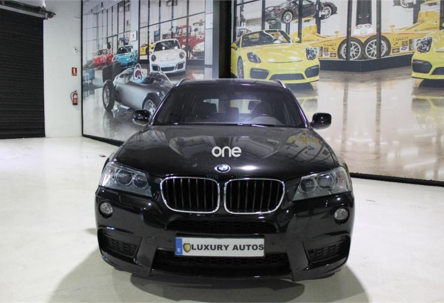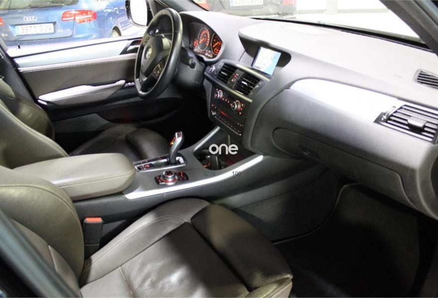 BMW X3, Diesel, año 2013, 111000 kilómetros, color Negro metalizado, precio 24500€. Intercambiador DVD de 6 discos,Sistema de navegación Professional,Cambio automático,Lavado de faros,Faros bi-xenón,Paquete aerodinámico M,Luces autoadaptables,Sensor de lluvia,Techo de cristal panorámico,Volante M de cuero,Volante deportivo multifunción de cuero con levas de cambio,Control de distancia en aparcamiento (PDC) delante y detrás. Vehiculo impecablede interior y exterior,CERTIFICADO DE KILOMETROS-CERTIFICADO DE NO SINIESTRAVILIDAD-HISTORIAL EN CASA OFICIAL-LLAVES-PAQUETE M INTERIOR Y EXTERIOR,xenon adaptativo,luz de dia,antinieblas,sensor de lluvia-luces-aparcamiento,isofix,techo panoramico de cristal-electrico y abatible,piel,llantas,espejos electricos-antideslumbramiento,volante multifuncion con levas,clima,ordenador de abordo,control de velocidad,STAR/STOP,radio CD multifuncion-navegacion.etc.,ayuda pendiente,boton modo,reposabrazos delantero,acabado interior en aluminio y piel,se entrega revisado y transferido con un año de garantia se acepta vehiculo como parte de pago,salvo error u omision.(Luxury autos pum)..