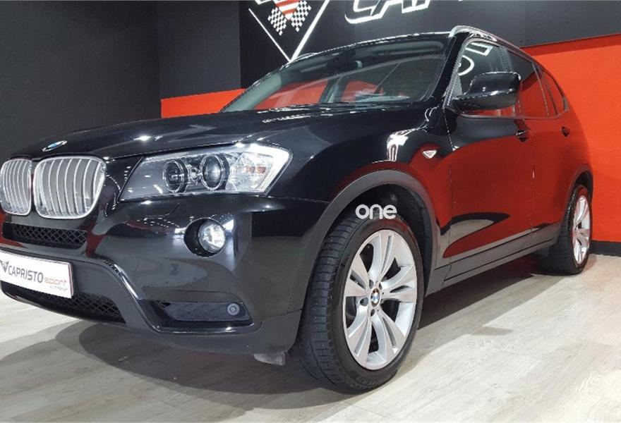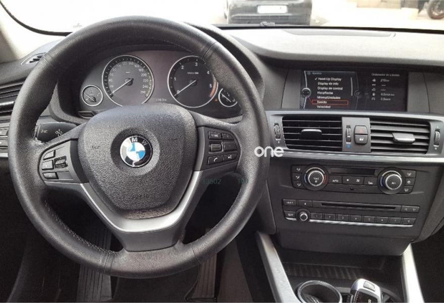 BMW X3, Diesel, año 2012, 118000 kilómetros, color Negro metalizado, precio 27900€. Edition Exclusive,Paquete deportivo M,Selección Drive,Selección Navigation,Selección Premium,Asientos deportivos para conductor y acompañante,Bolsa para esquíes,Calefacción de los asientos delanteros,Cuero 'Nevada',Molduras interiores Aluminium con rectificado longitudinal fino,Soporte lumbar en los asientos delanteros,Intercambiador de 6 CD,Preparación para teléfono móvil con interfaz Bluetooth,Radio BMW Business CD,Sistema de altavoces HiFi,Sistema de navegación Professional,Sistema HiFi Professional,Control por voz,Cuero 'Nevada' Schwarz,Dispositivo de alarma,Elementos exteriores M,Faros bi-xenón para función de luz de cruce y de carretera,Franja verde en el parabrisas,Guarnecido interior del techo BMW Individual antracita,Lavado de faros,Luces autoadaptables,Paquete aerodinámico M,Paquete de compartimentos,Paquete de iluminación,Preparación para intercambiador de CD,Retrovisor interior con ajuste automático anti-deslumbramiento,Sensatec Schwarz,Sensor de lluvia y accionamiento automático de las luces de cruce,Servotronic,Sistema de fijación adaptativo,Volante M de cuero,Acristalamiento de protección solar BMW Individual,Carbonschwarz (metalizado),Espejos retrovisores interior y exteriores con ajuste automático anti-deslumbramiento,Confort climático para parabrisas,Llantas de aleación ligera M de radios dobles (estilo 192 M) con neumáticos de diferentes dimensiones,Reglaje eléctrico de los asientos con memoria,Suspensión deportiva,Airbags laterales traseros,Control de distancia en aparcamiento (PDC),Sistema de fijación para asiento infantil ISOFIX,Triángulo de emergencia con equipo de primeros auxilos. BMW X3 PACK M 3.0D X-DRIVE PACK M,CAMBIO AUTOMATICO CON LEVAS,head up displey,tres tipos de conduccion,control de descenso,sistema de navegacion panoramica profesional,volante deportivo m multifuncional,faros bi xenon direccionables,asistente para luz de carretera,cristales oscurecidos,sillones deportivos m en piel negra,sillones electricos,paquete interior aluminio cepillado,espejos calefactados electricos y abatibles,sistema isofix,aperura y arranque sin llaves,control de velocidad,control de descenso,paquete de iluminacion interior y exterior,llantas de 19 pulgadas m,suspension deportiva m,equipo de sonido profesional harman kardon,cargador de 6 cd,entrada usb,climatizador digital,sensores de parking delanteros y traseros, MUY EXCLUSIVO,SE ENTREGA TRANSFERIDO CON ITV AL DIA,CON UNA REVISION INTEGRAL,LIMPIEZA INTEGRAL,CERTIFICADO DE NO SINIESTRALIDAD.,,,,,.