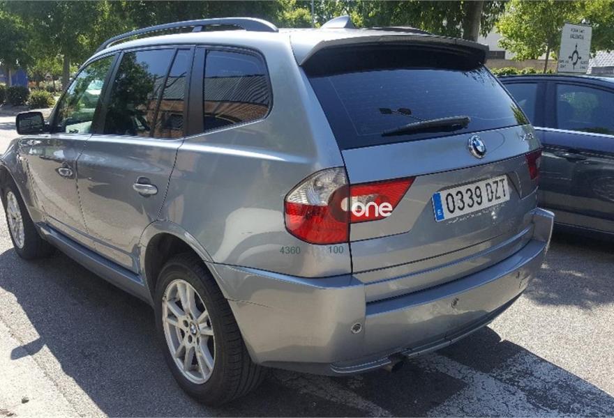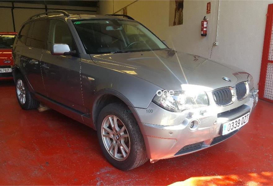 BMW X3, Diesel, año 2006, 262000 kilómetros, color Gris / Plata metalizado, precio 6950€. Reposabrazos delantero,Tapicería de cuero Ambiente,Dispositivo de alarma,Espejos int. y ext. antideslumbramiento,Faros antiniebla,Faros xenón luz de cruce y carretera,Intemitentes blancos (Individual),Lavado de faros,Partes exteriores en color de carrocería,Preinstalación intercambiador BMW 6 CD,Retrovisor int. ajuste aut. antideslumb.,Sensor lluvia/conexión automática luces,Techo panorámico de cristal,Volante multifuncional c/control crucero,Pintura metalizada,Control de distancia aparcamiento (PDC),Triángulo de emergencia y botiquín. -Oferta especial 7.950 € con iva incluido y cambio de nombre incluido y garantia de 12 meses Nacional ( suplemento 450)