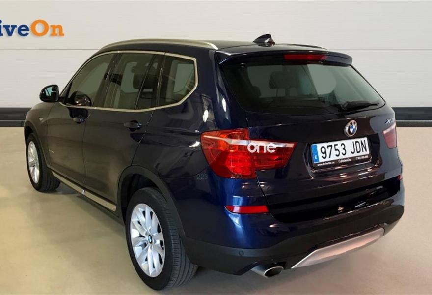BMW X3, Diesel, año 2015, 64315 kilómetros, color Azul (TIEFSEEBLAU) metalizado, precio 24900€. Sistema de navegación Business,Combinación tela/cuero 'Carve' Bernstein/Schwarz Schwarz,Tiefseeblau (metalizado),18" Llantas de aleación ligera de radios en V (estilo 307). Nuestra propuesta: