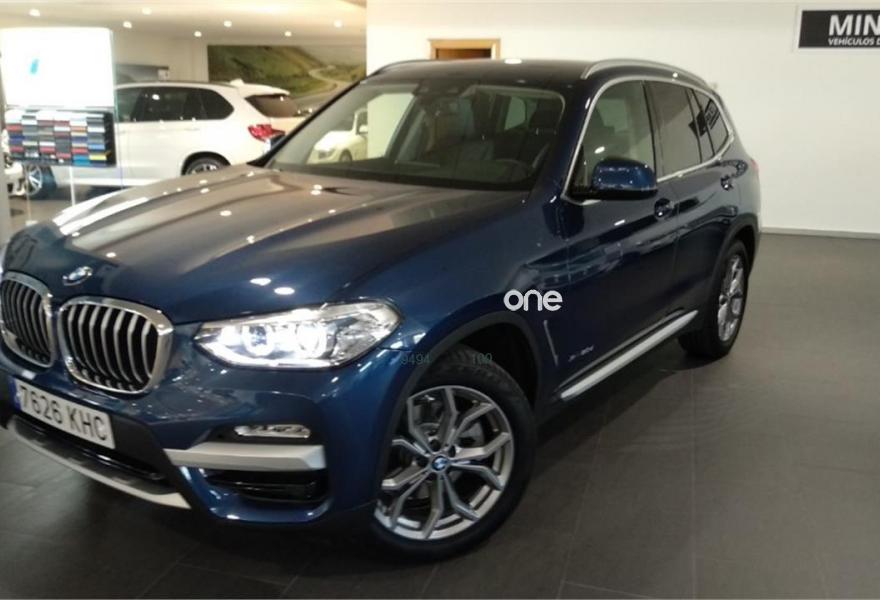 BMW X3, Diesel, año 2018, 10496 kilómetros, color Azul metalizado, precio 47900€. Sistema de telefonía con carga inalámbrica,Faros antiniebla de LED,Paquete Connectivity,Asientos deportivos para conductor y acompañante,Paquete de compartimentos,Sistema de navegación Professional,Reproductor de CD,Acabado xLine,Control por gestos BMW,Faros LED con contenido ampliado,Dispositivo de alarma,Real Time Traffic Information,Retrovisor interior, con ajuste automático anti-deslumbramiento,Telefonía de confort con conexión ampliada para Smartphone,Paquete de retrovisores interior y exteriores,Phytonicblau (metalizada).